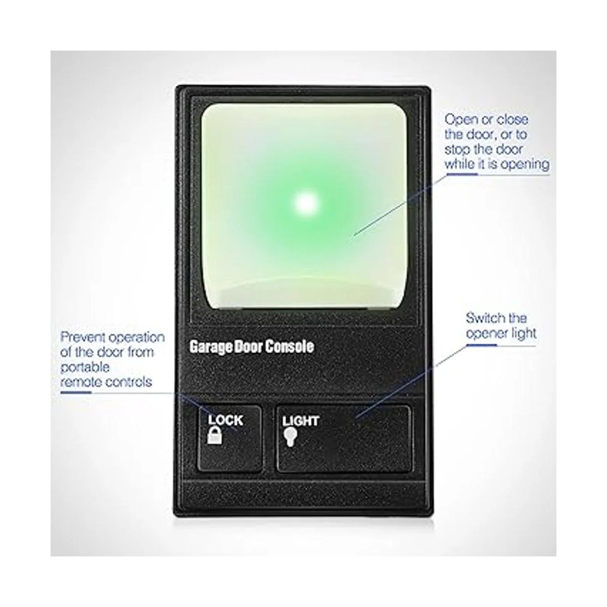 Botones de control multifunción: el botón cuadrado de la consola de la puerta del garaje es para abrir o cerrar la puerta, o para detener la puerta mientras se está abriendo; pulsa el botón de luz para cambiar la luz de la consola, conveniente para operar el panel en la oscuridad; el botón de bloqueo para evitar el control remoto, mejora la seguridad