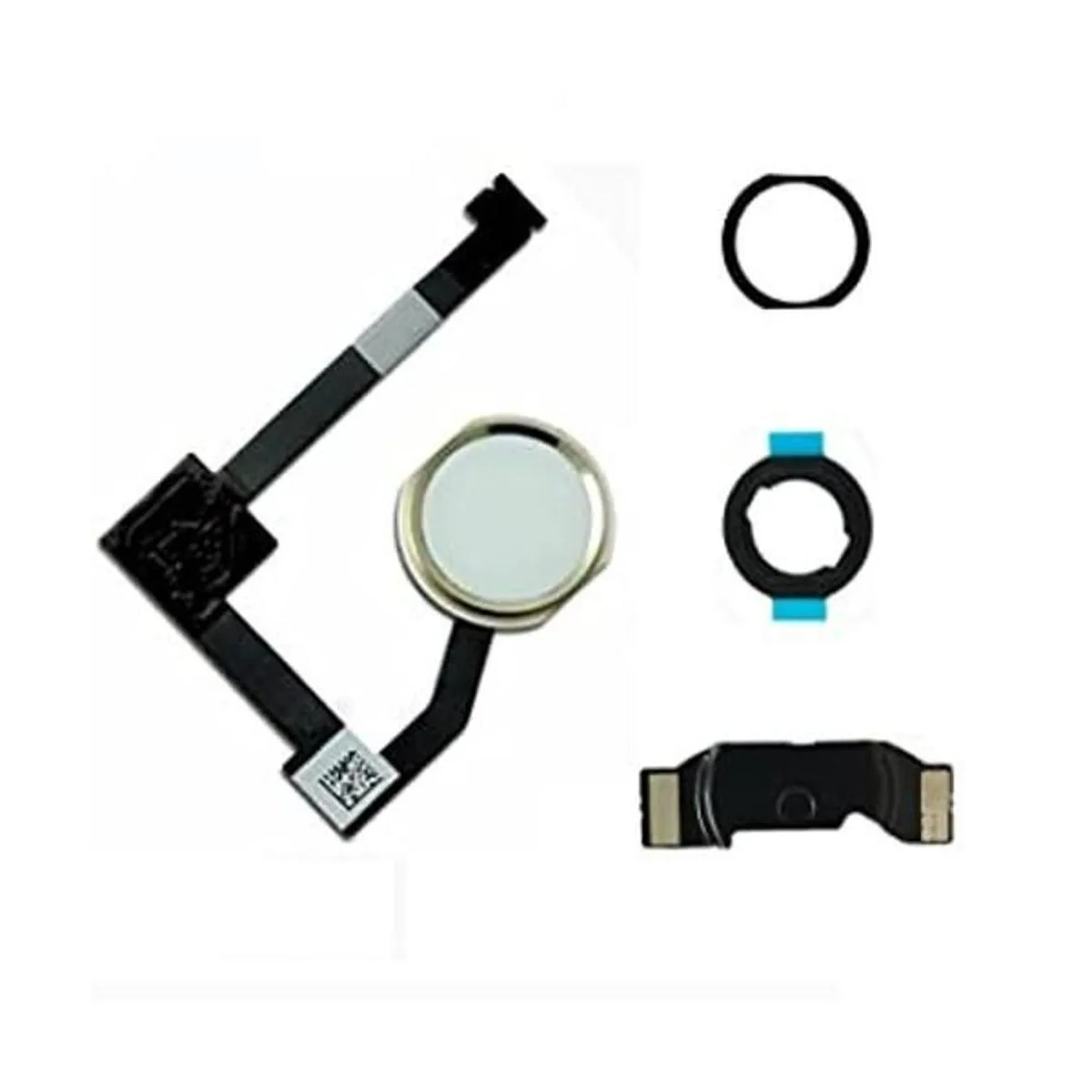 Botón de inicio de repuesto para iPad Mini 4 2015 de 7.9 pulgadas A1538 A1550, iPad Air 2 de 9.7 pulgadas A1566 A1567 A1568, iPad Pro 12.9 de 1 generación 2015 A1670 A1671 con conector de cable flexible, blanco anillo dorado