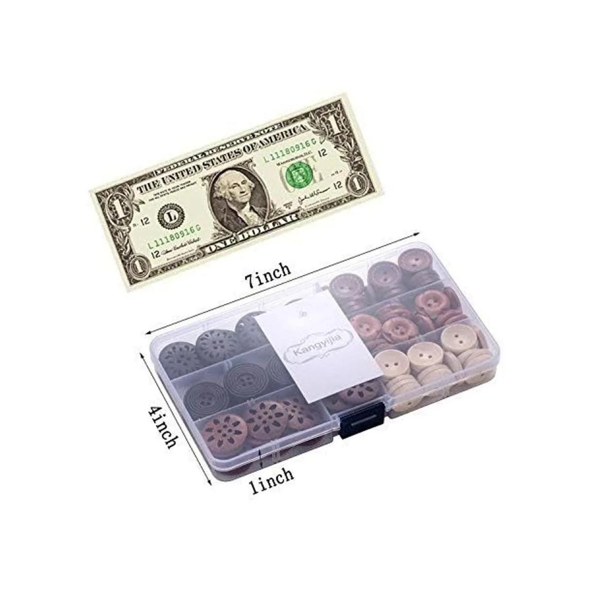 Paquete: la caja de almacenamiento incluye 6 tipos de botones redondos hechos a mano, 15 25 piezas por tipo, 118 piezas en total en un paquete