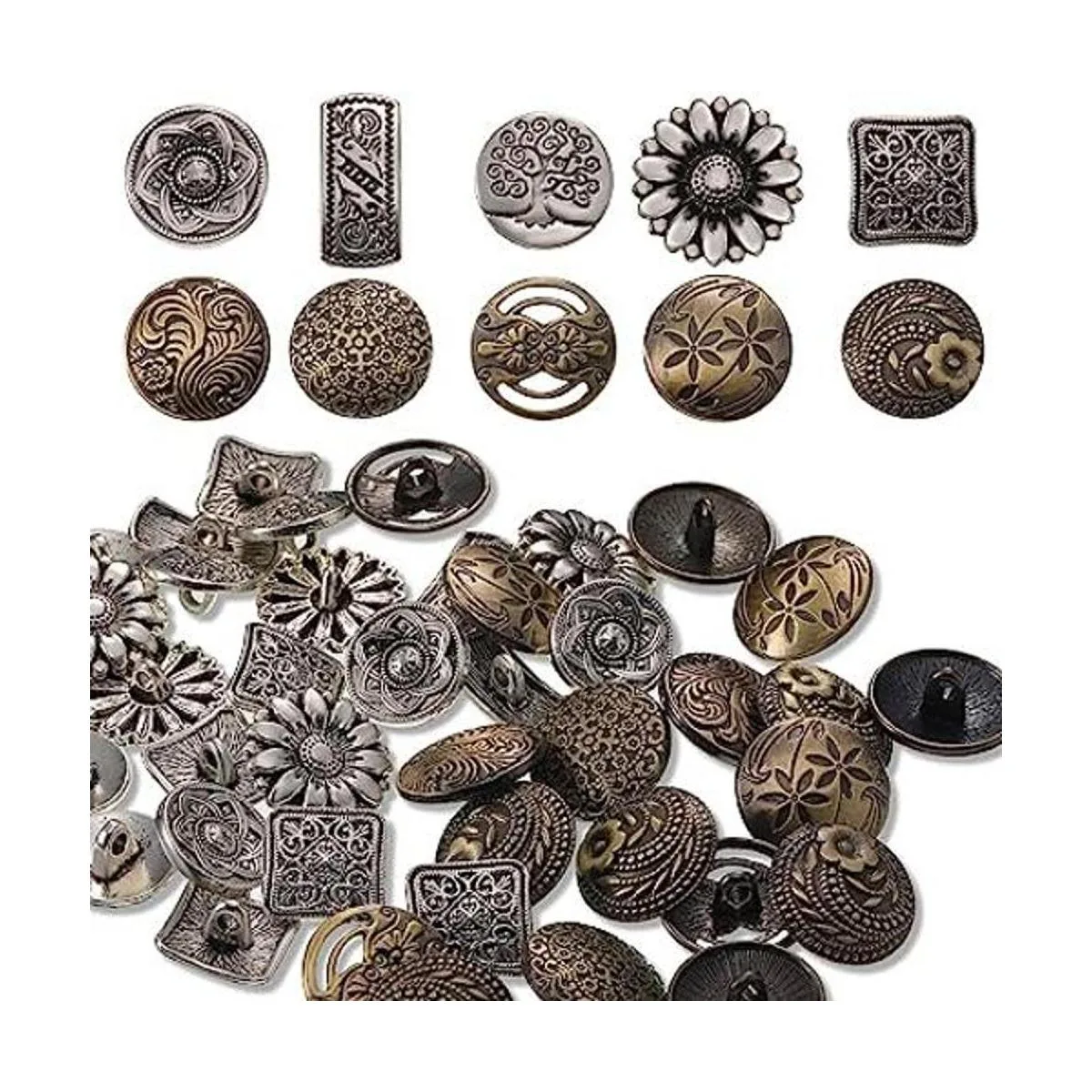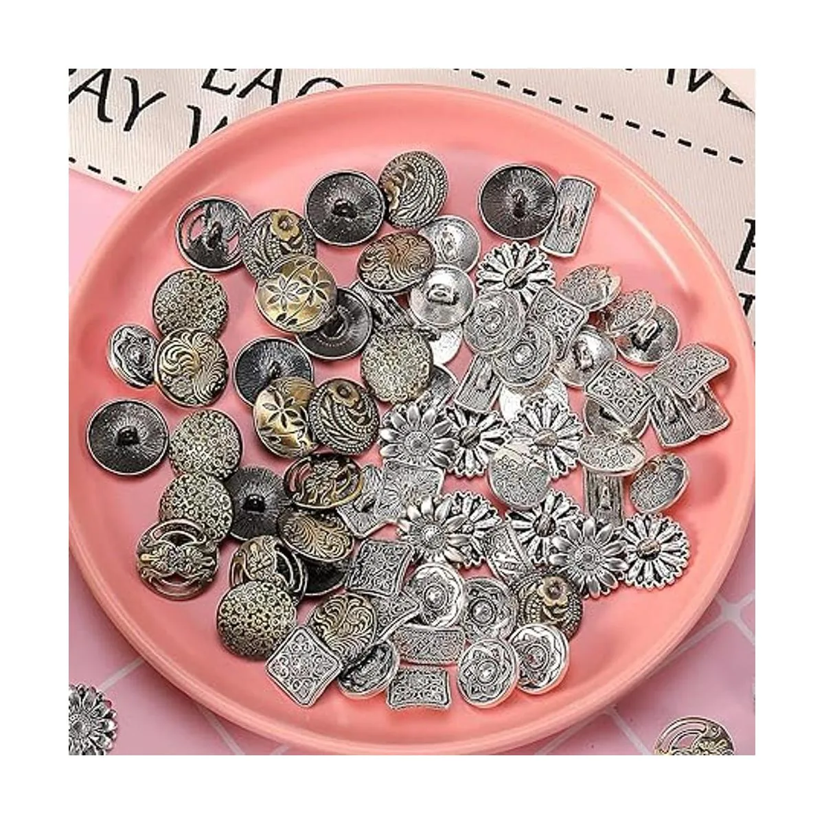 Botones de metal, 80 piezas de color plateado antiguo y bronce para coser manualidades, decoración de costura, botones redondos de flores de estilo vintage mixto