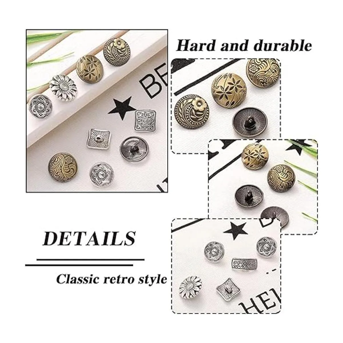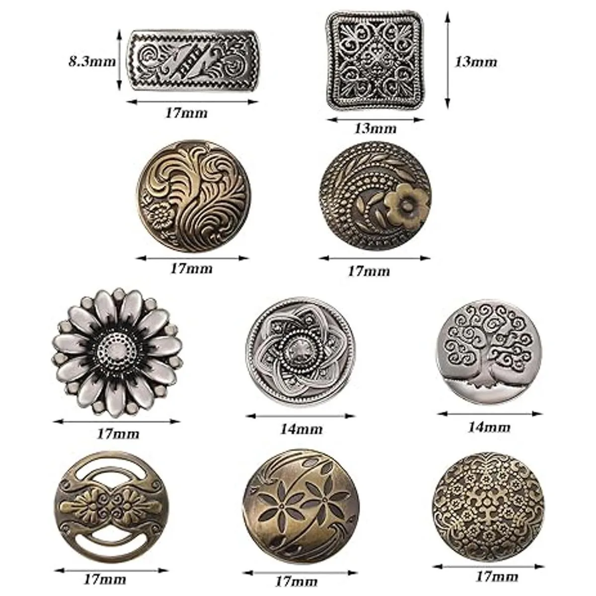 Material: nuestros botones están hechos de aleación de zinc, que es un estilo retro clásico, los estilos plateados y bronce te permiten crear diferentes estilos