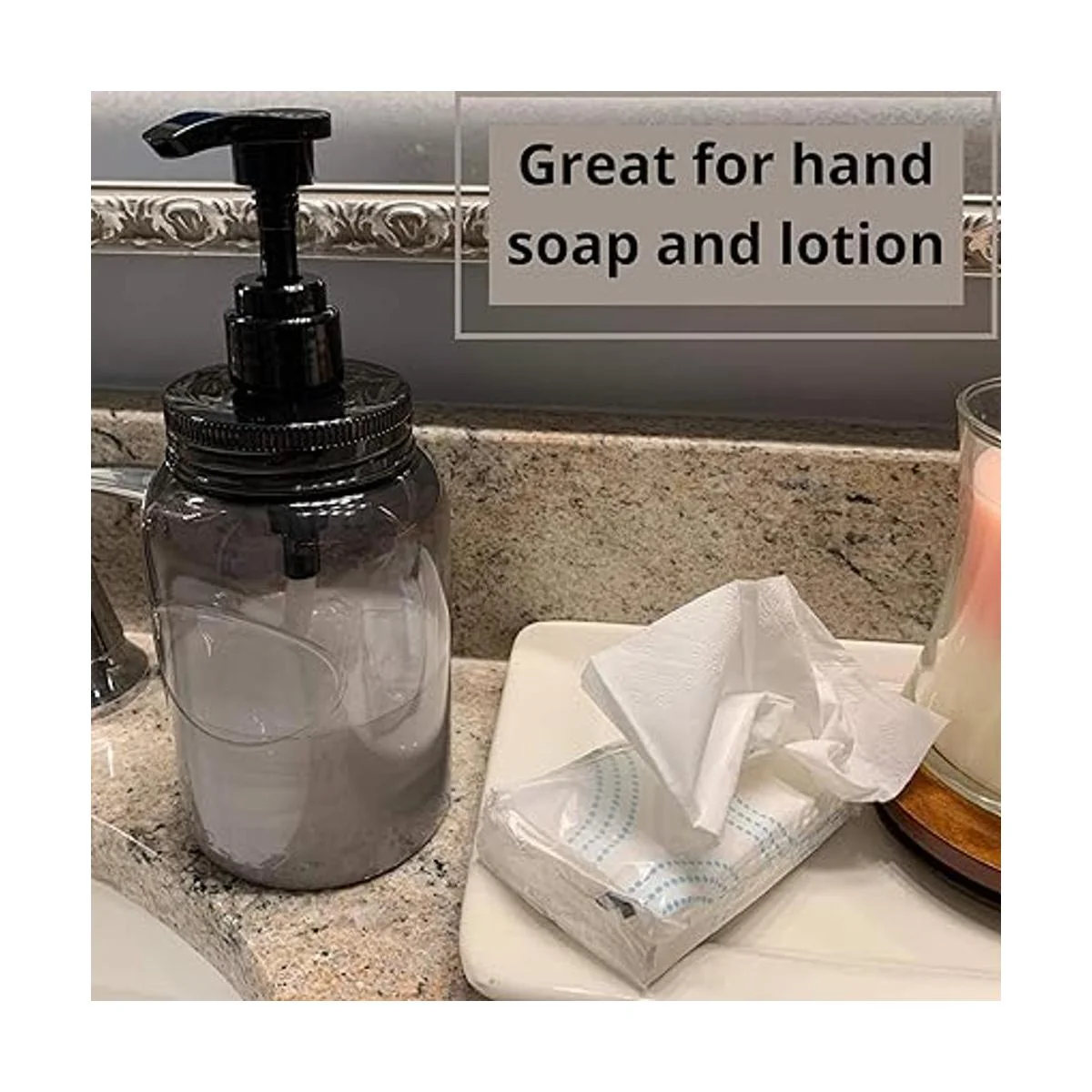 Incluido en la caja: 4 botellas de color gris tintado de 24 onzas, 4 tapas de plástico negro con bombas
