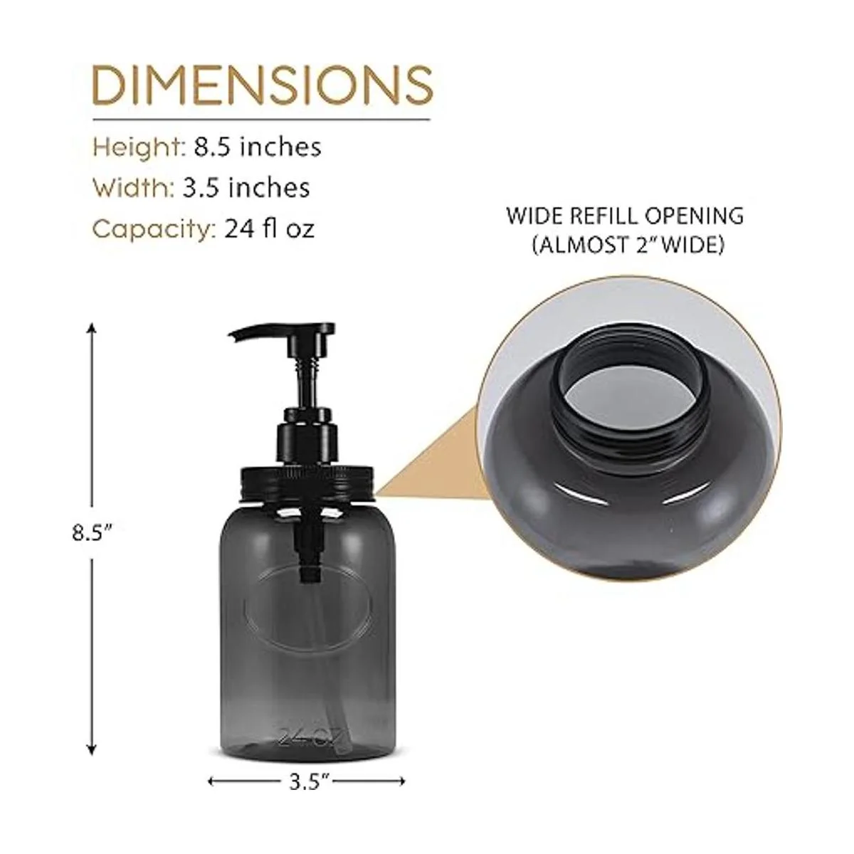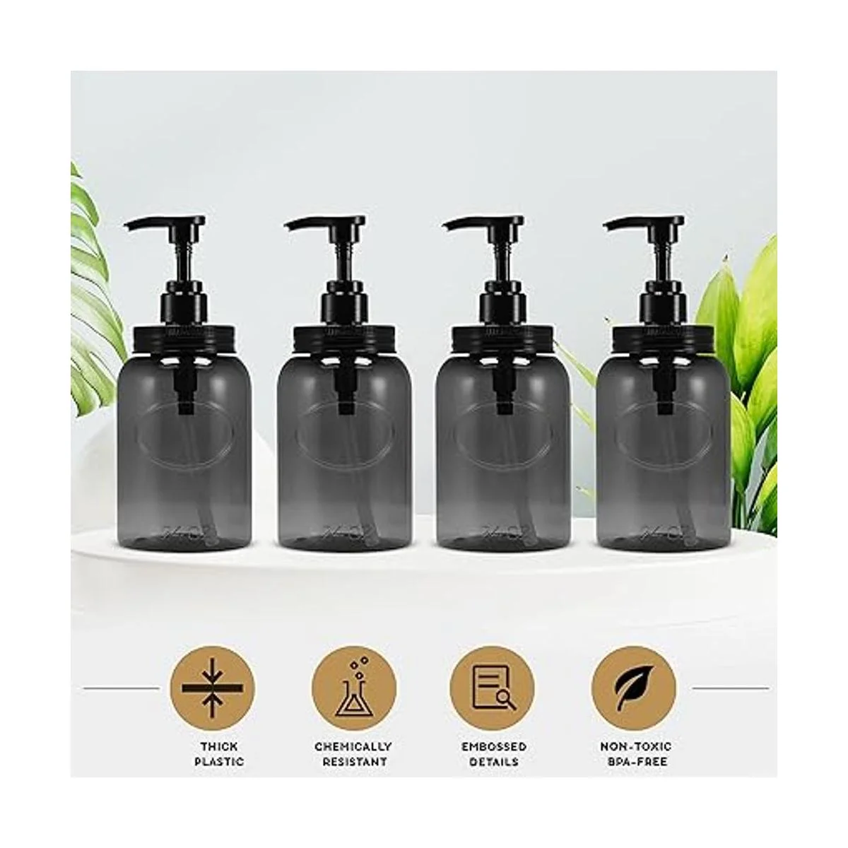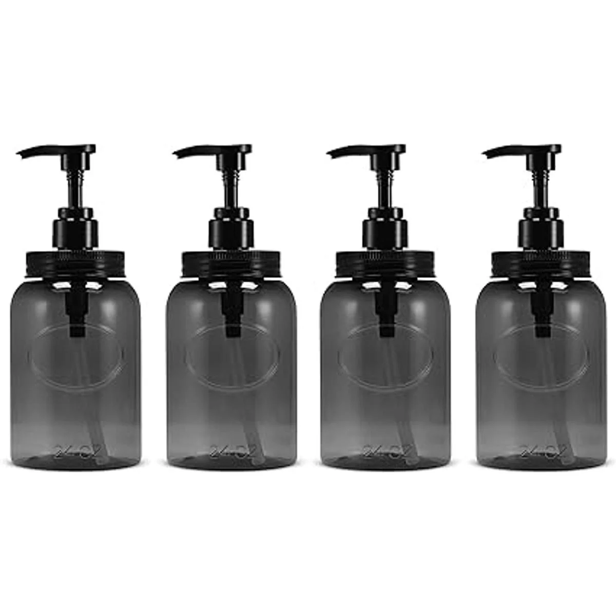 Bottiful Home Juego de 4 dispensadores de botellas de plástico de boca ancha recargables de 24 onzas para champú, acondicionador, lavado, jabón, loción, jabón de platos, desinfectante, detergente gris