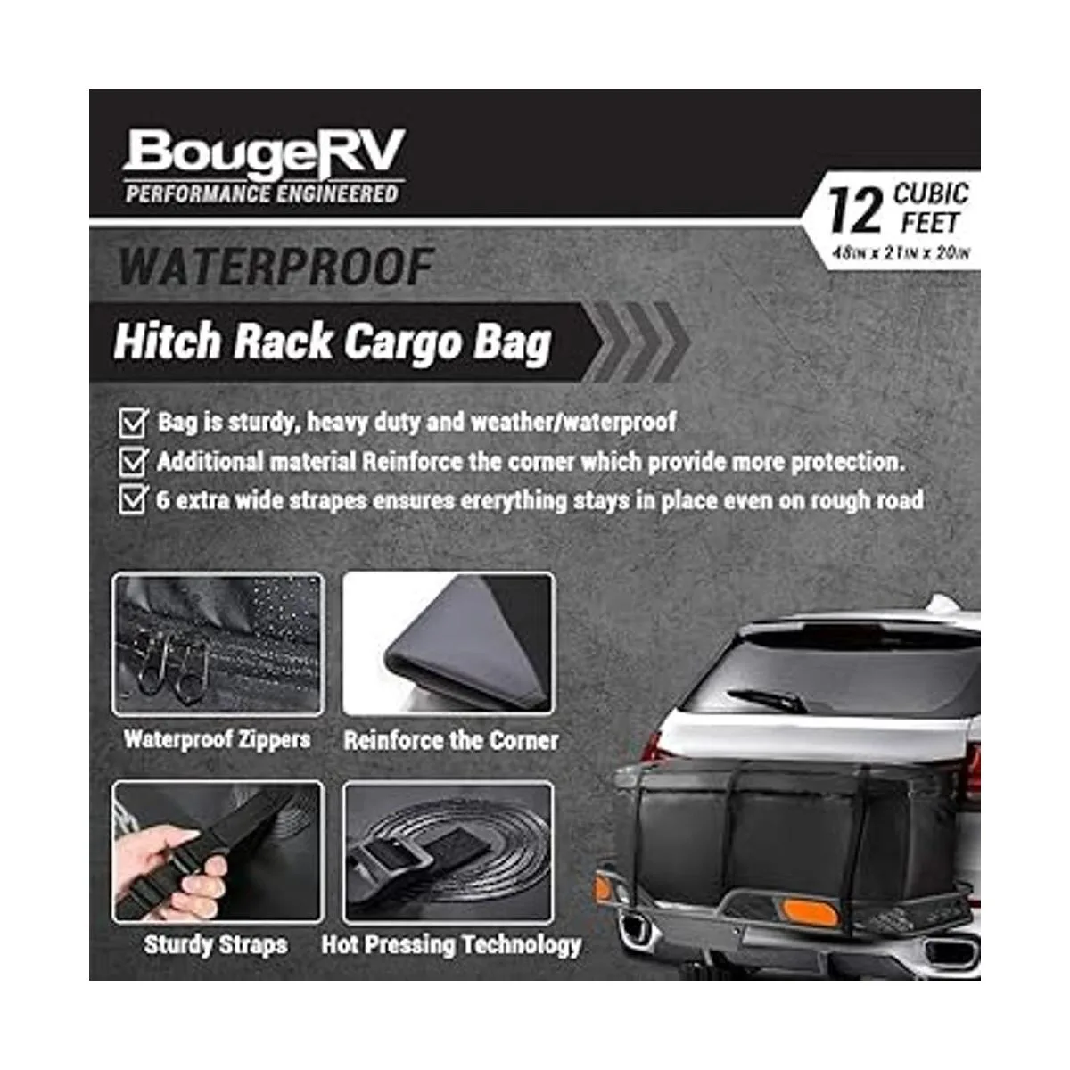 Diseño ampliable: el portador de carga de enganche BougeRV está hecho con material de poliéster 1000D resistente a la lluvia con las dimensiones de 48 pulgadas de largo x 20 pulgadas de ancho x 22 pulgadas de alto con una capacidad máxima de volumen de 12 pies cúbicos. Se puede plegar fácilmente para un almacenamiento compacto.