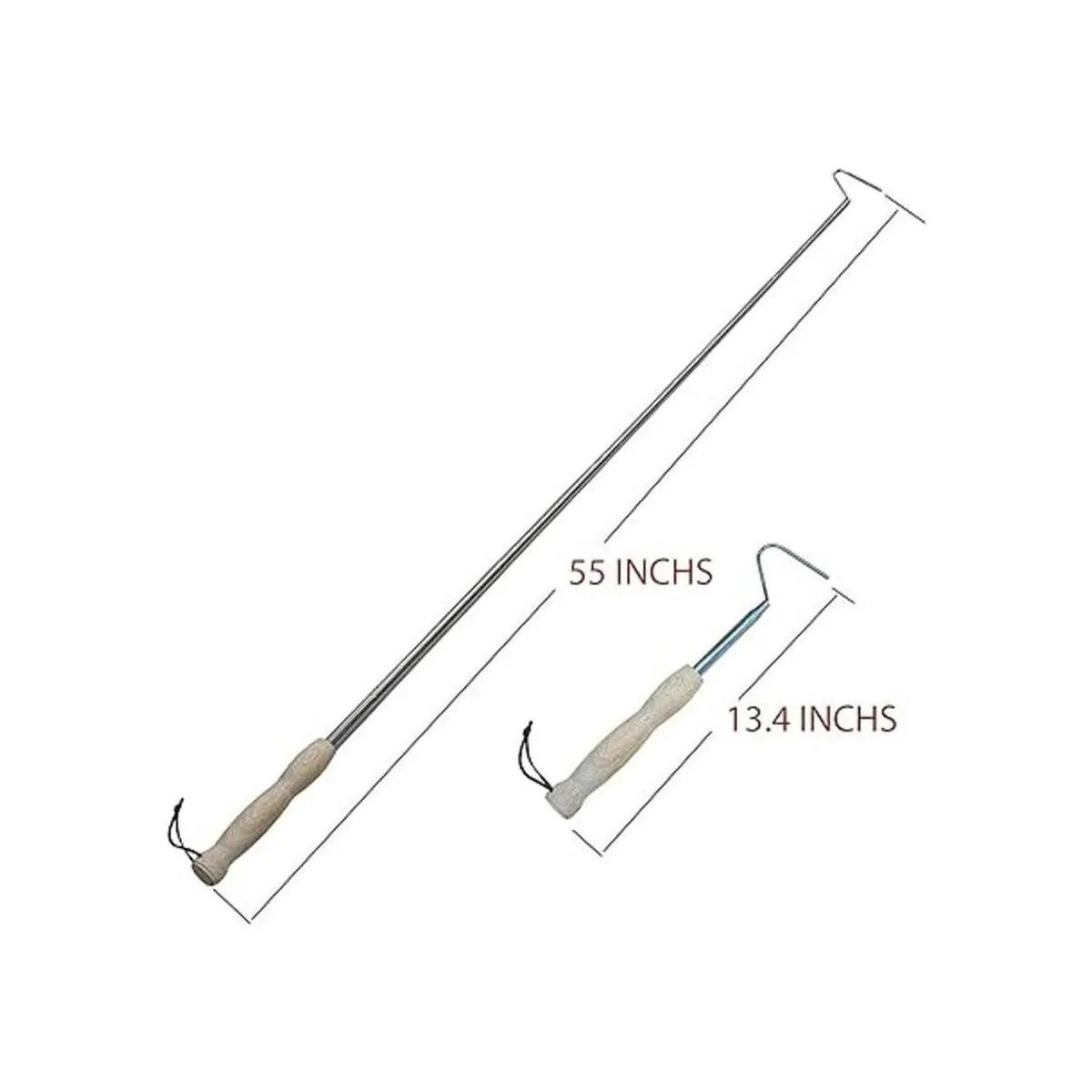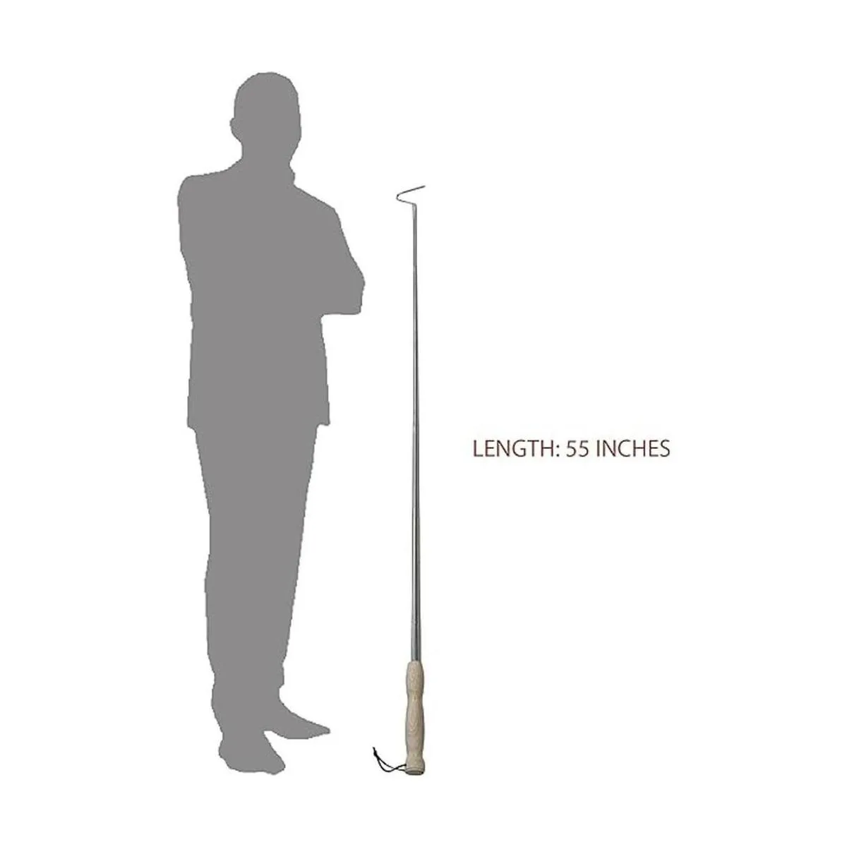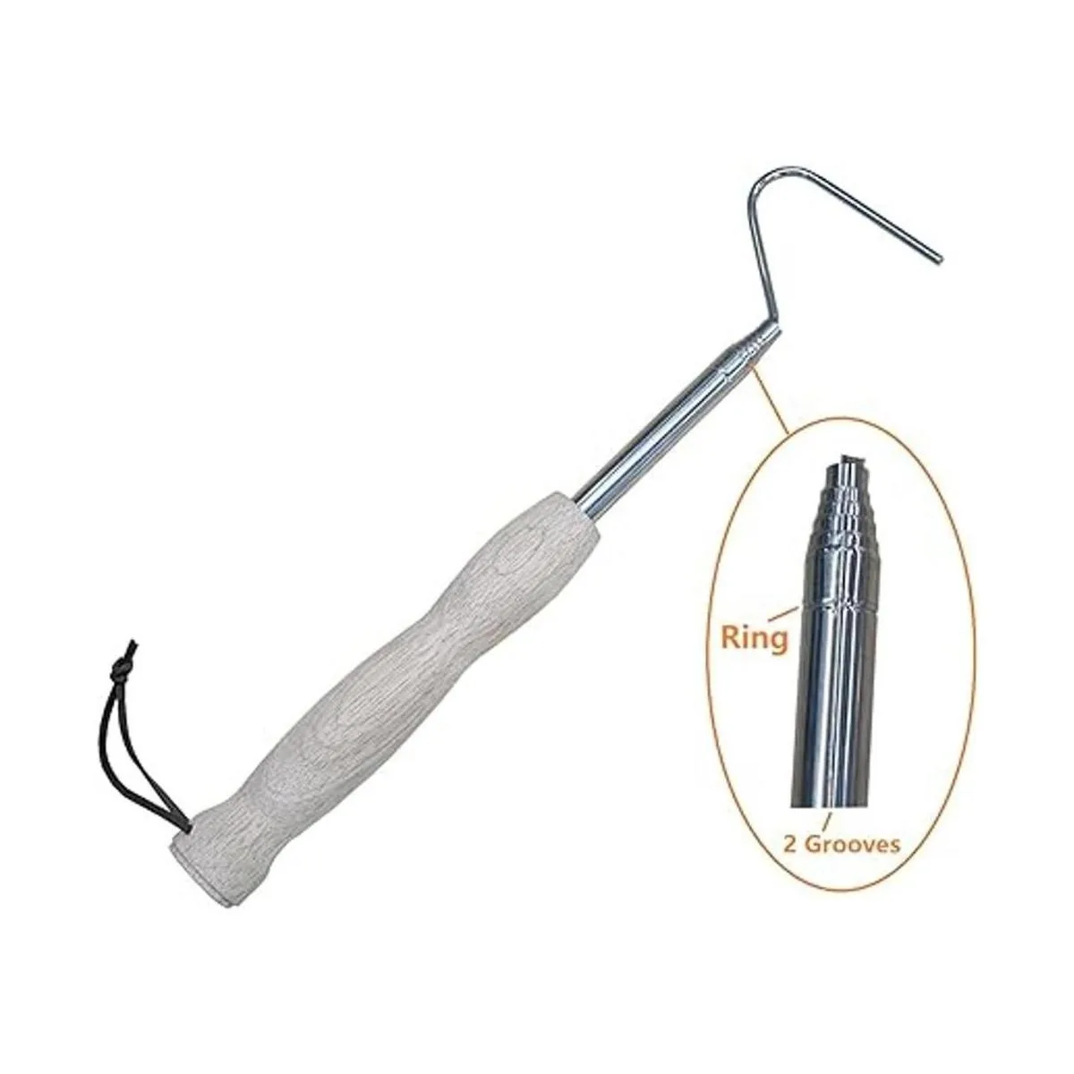BOVONVON Gancho de serpiente plegable de 55 pulgadas, no giratorio, varillas telescópicas diseñadas con 2 ranuras, gancho de acero inoxidable resistente, gancho de herramienta de serpiente, mango de madera más grande