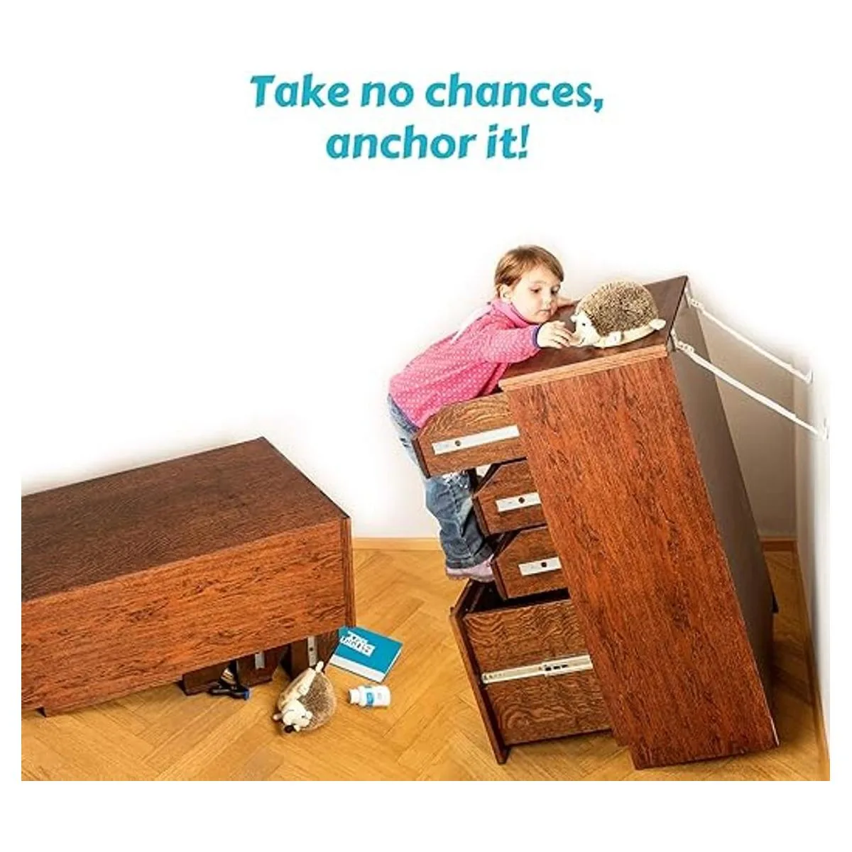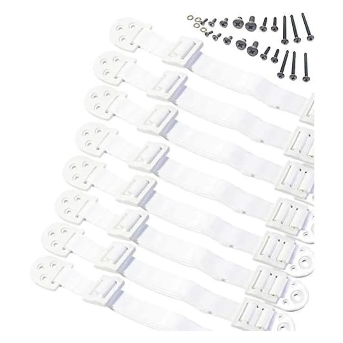 Boxiki Kids Anclajes ajustables para muebles de fijación y vestidor para bebés con 8 anclajes de pared y correas de terremoto, kit de seguridad para bebés y correas de seguridad para el hogar, Blanco