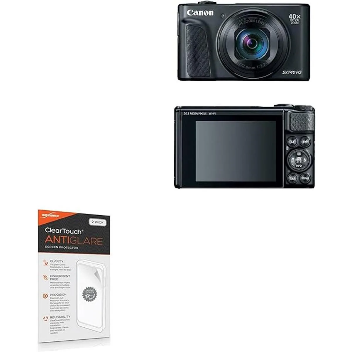 BoxWave Canon Powershot SX740 HS Protector de Pantalla, ClearTouch Antibrillo 2 unidades Antihuellas Matte Film Skin para Canon Powershot SX740 HS, SX70HS