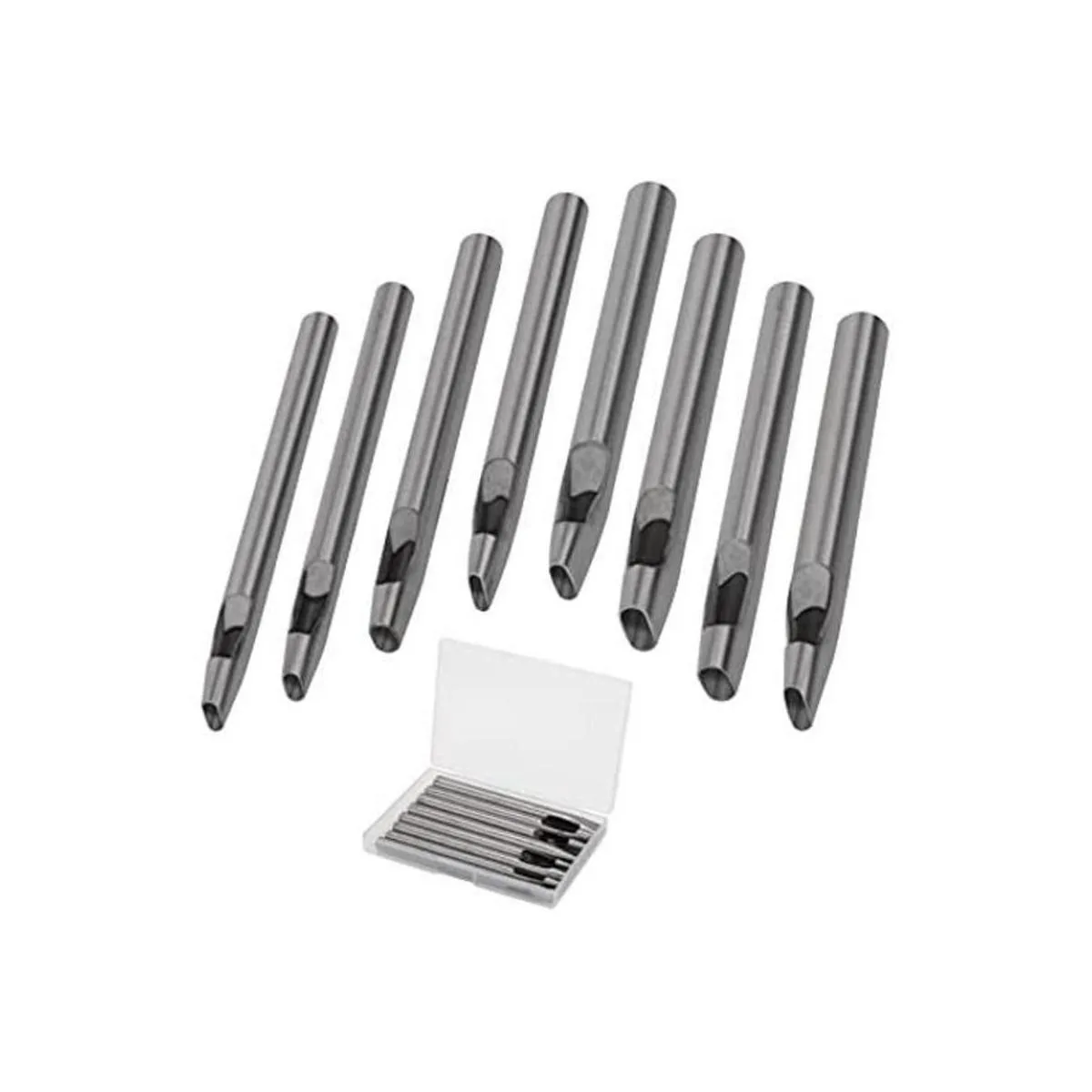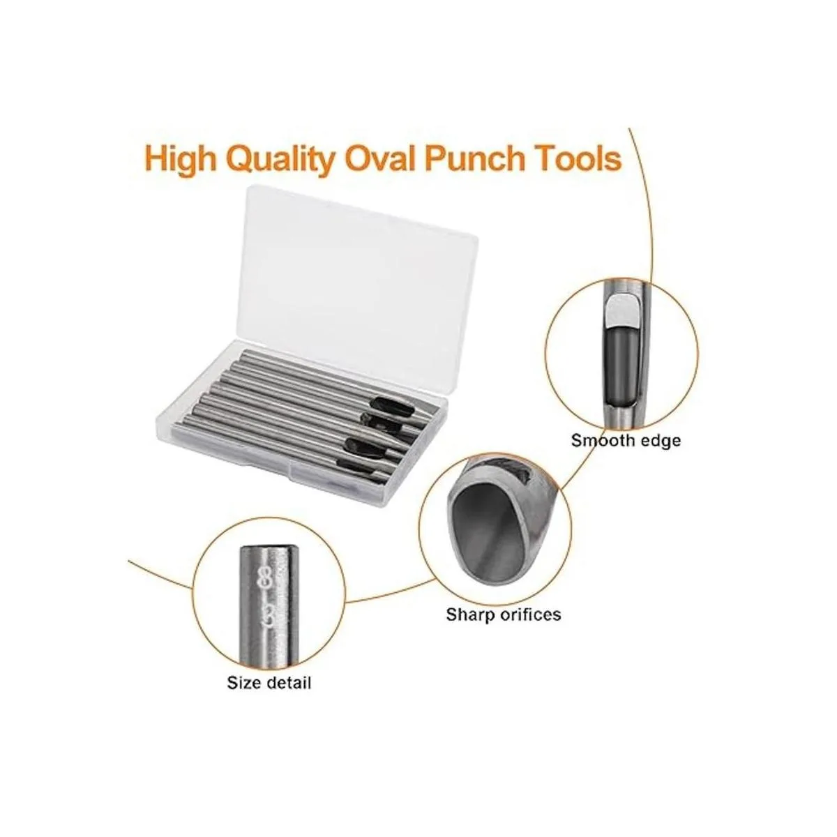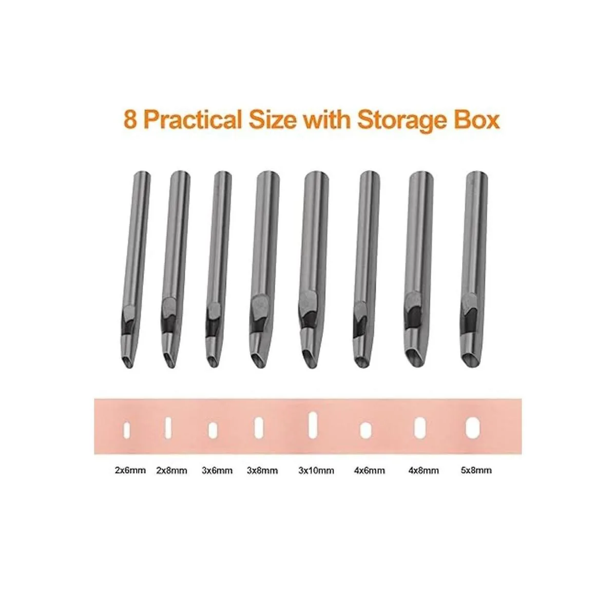 Boyistar Perforadora ovalada de 8 tamaños para cuero de 2 a 0.197 in, juego de herramientas perforadoras de cuero ovaladas para correa de reloj, cinturón, manualidades de cuero con caja de almacenamiento
