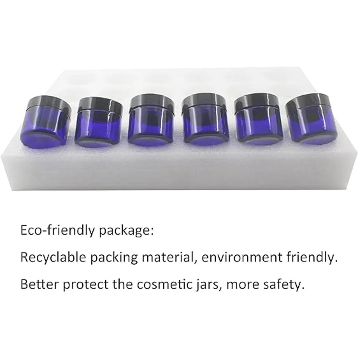 Recipientes de cosméticos de vidrio azul de 1.9 fl oz con tapas. Viene con forro interior, la tapa interior adicional ayuda a prevenir fugas.