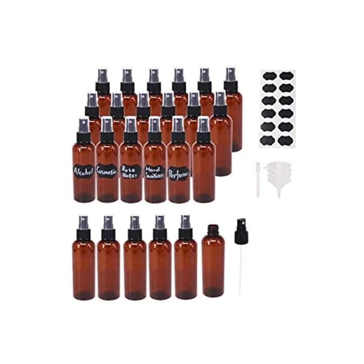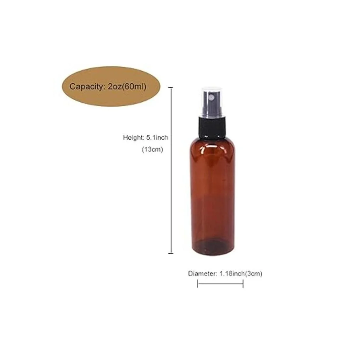 BPFY Paquete de 24 botellas de aerosol de plástico ámbar de 2 onzas para aceites esenciales, perfumes, cosméticos, desinfectantes de manos, alcohol, botella de espray de niebla fina, mini botella de viaje, pequeños recipientes líquidos recargables