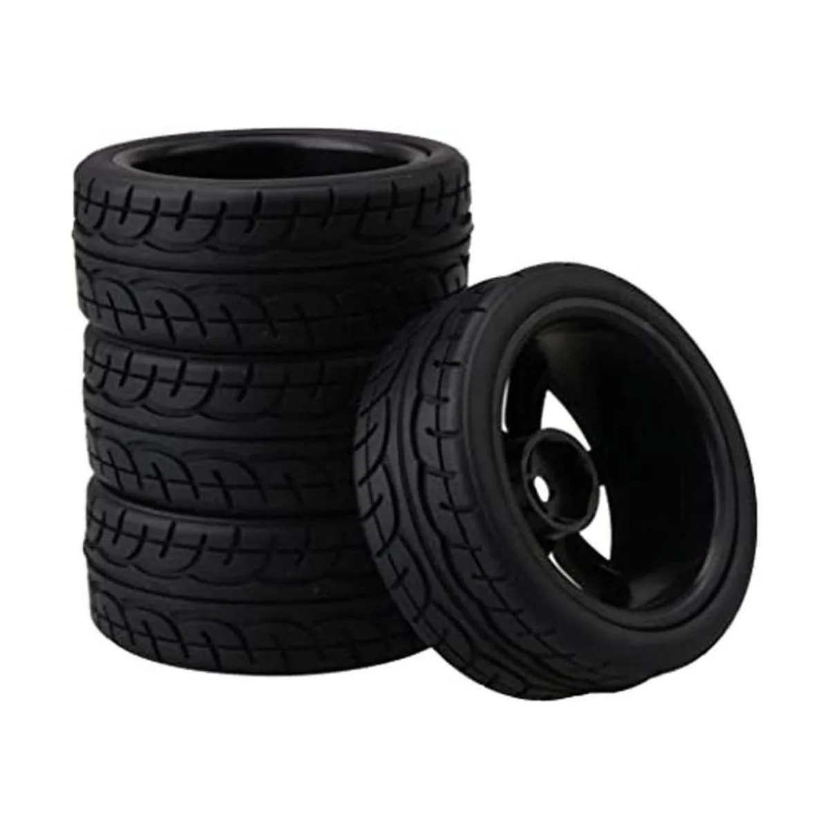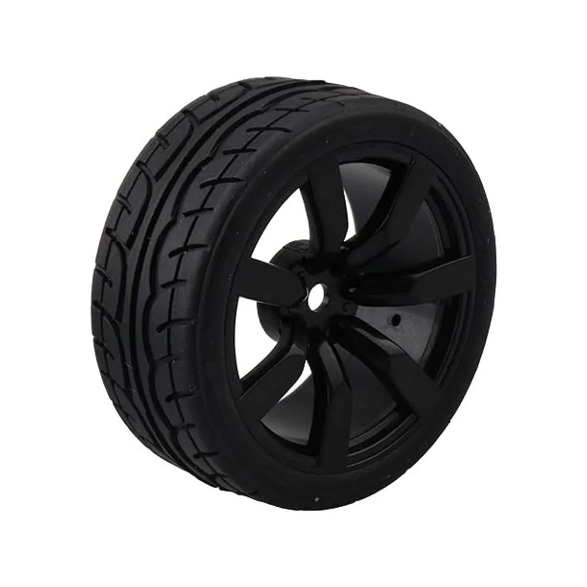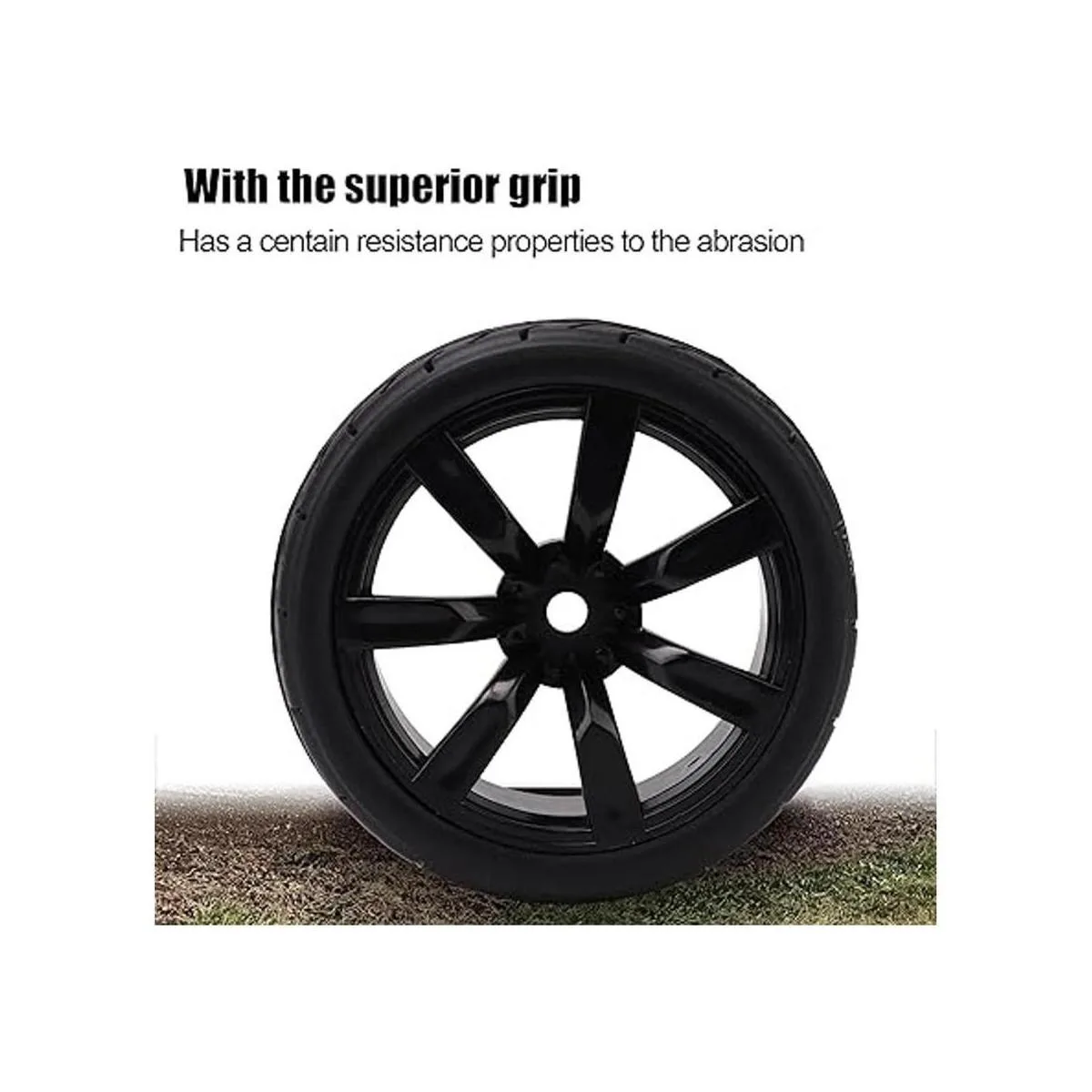 BQLZR 4PCS RC1 10 Coche deportivo plano con neumáticos de patrón de montaña y nuevas ruedas negras de 7 radios 20468