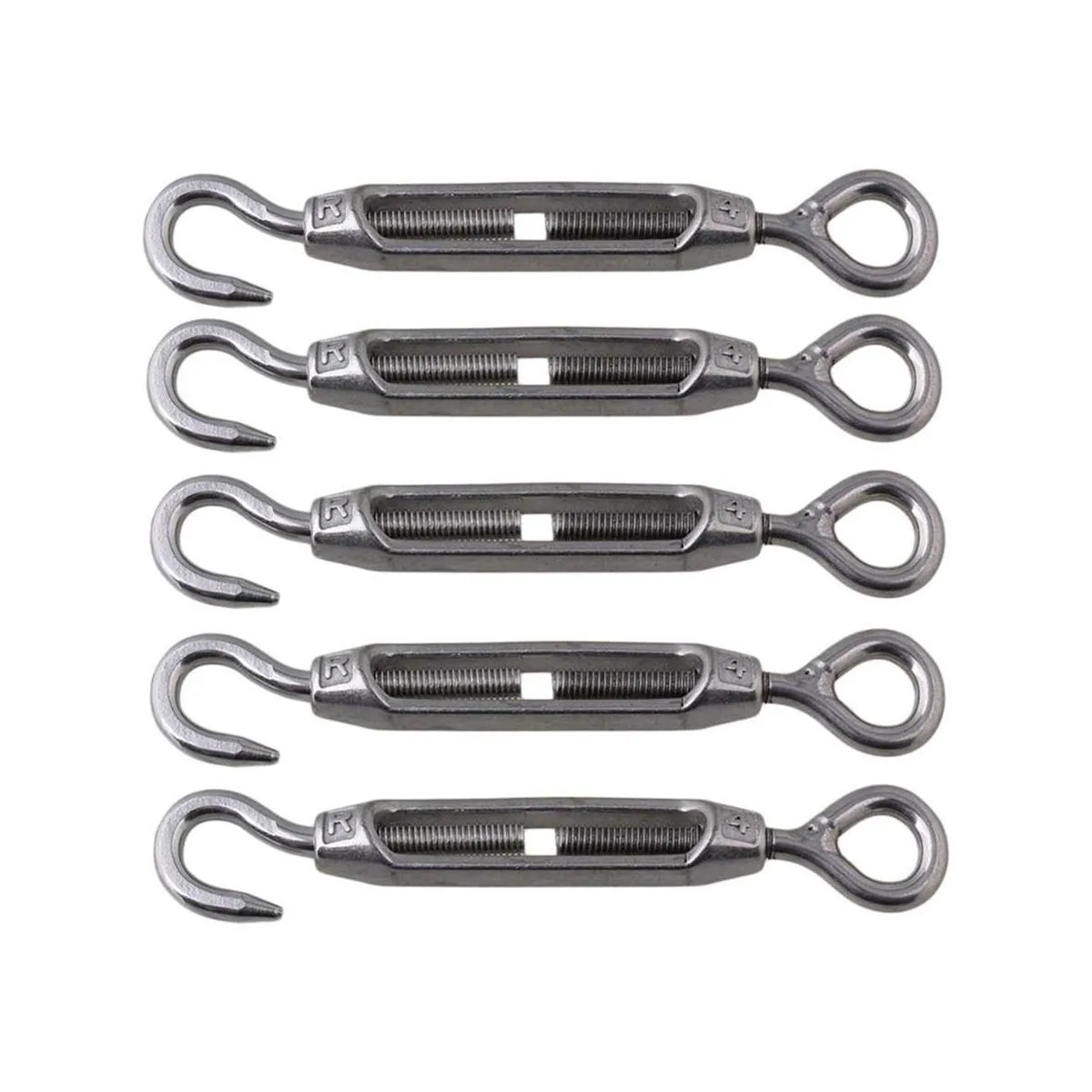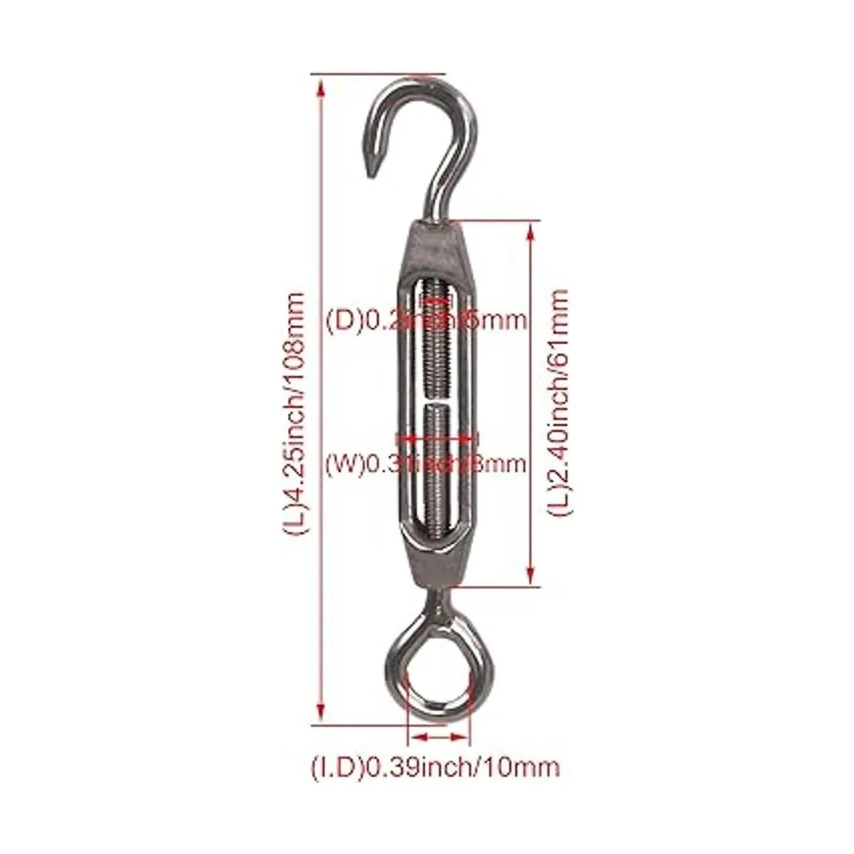 BQLZR M4, Tensor de cable de acero, gancho y ojo, acero inoxidable 304, paquete de 5