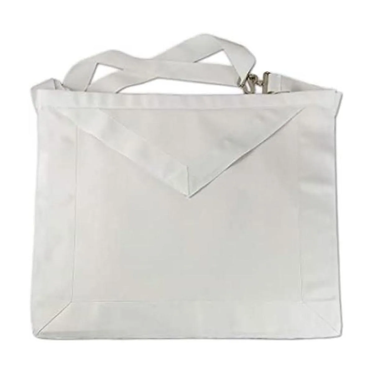El delantal masónico está hecho de cuero sintético y cinta de poliéster blanco de 2.0 in de ancho. El cinturón de cintura ajustable es de 1.2 in de ancho y se puede ajustar para la línea de cintura de hasta 39.0 in a 48.0 in.
