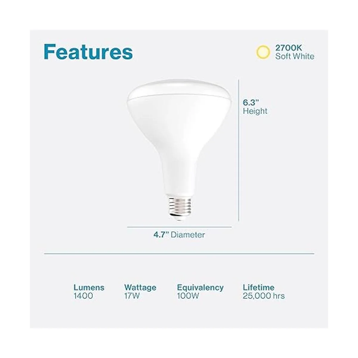Certificado Energy Star y UL: mantenemos los más altos estándares para todos nuestros productos probando cada producto para un rendimiento y seguridad óptimos. Nuestras bombillas LED BR40 proporcionan una luz brillante instantánea y sin zumbidos ni parpadeo para una máxima comodidad ocular.