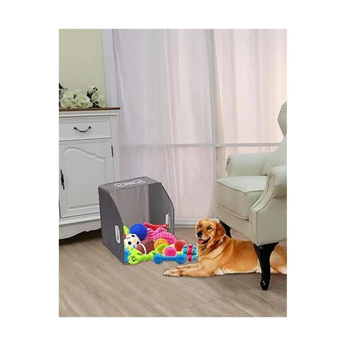 Brabtod Cubo de almacenamiento plegable Cesta de almacenamiento rectangular con asa, organizador para juguetes de mascotas, pañales, estantes, armario, gris