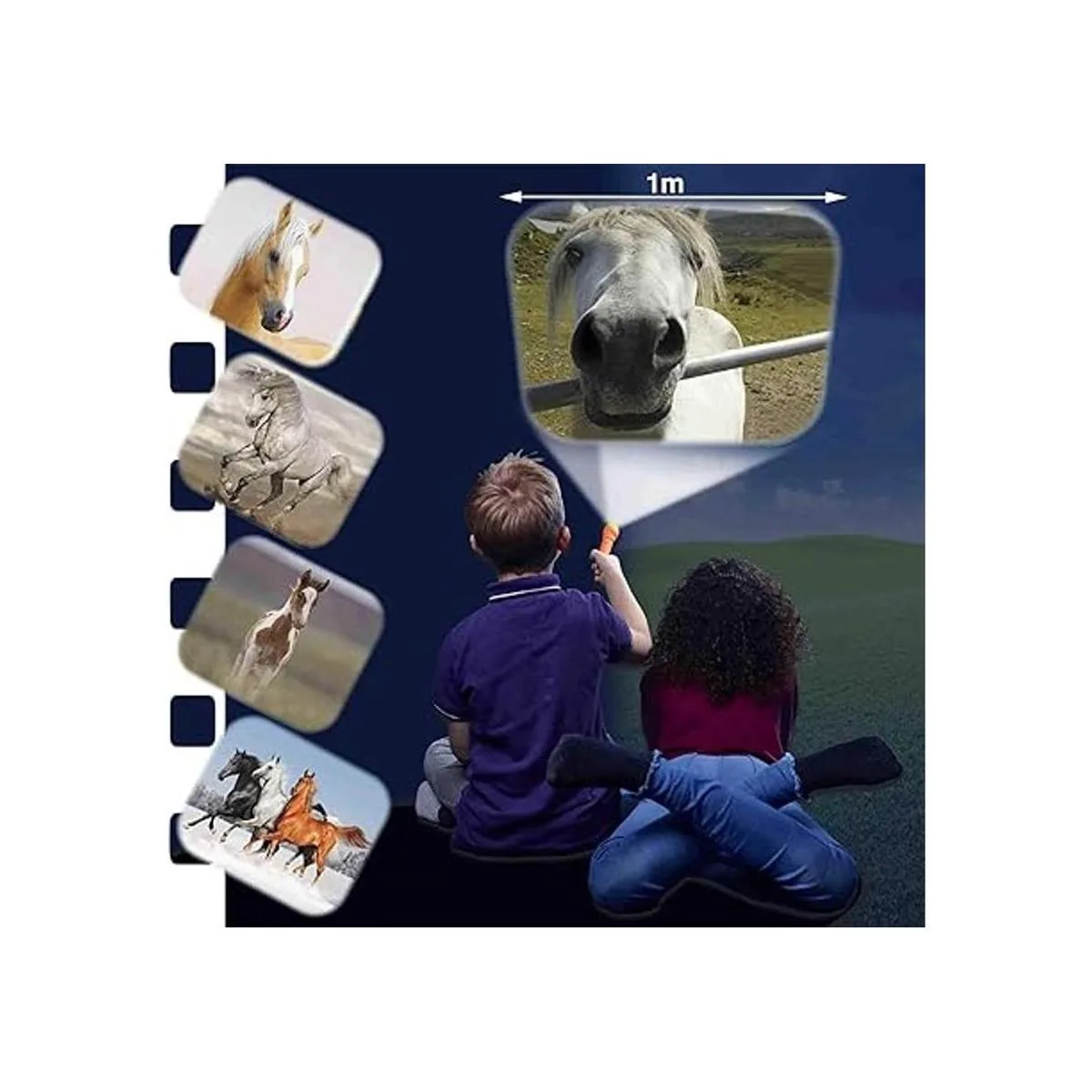 Proyecta 24 imágenes de caballo y poni en paredes y techos en una habitación oscura