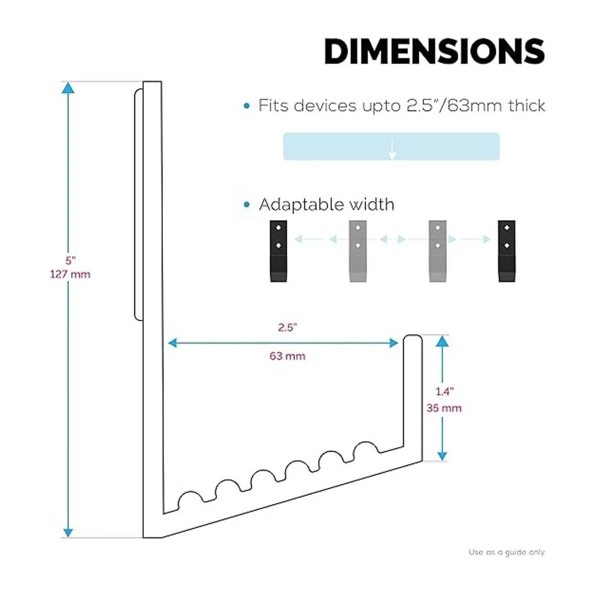 Soporte de pared ajustable: un soporte de pared diseñado para sostener tus dispositivos de una manera segura, fácil de instalar y puede adaptarse a cualquier ancho debido a su diseño de dos partes. Guarda tus dispositivos en la pared, fuera del camino y libera espacio en tu escritorio y otras superficies.