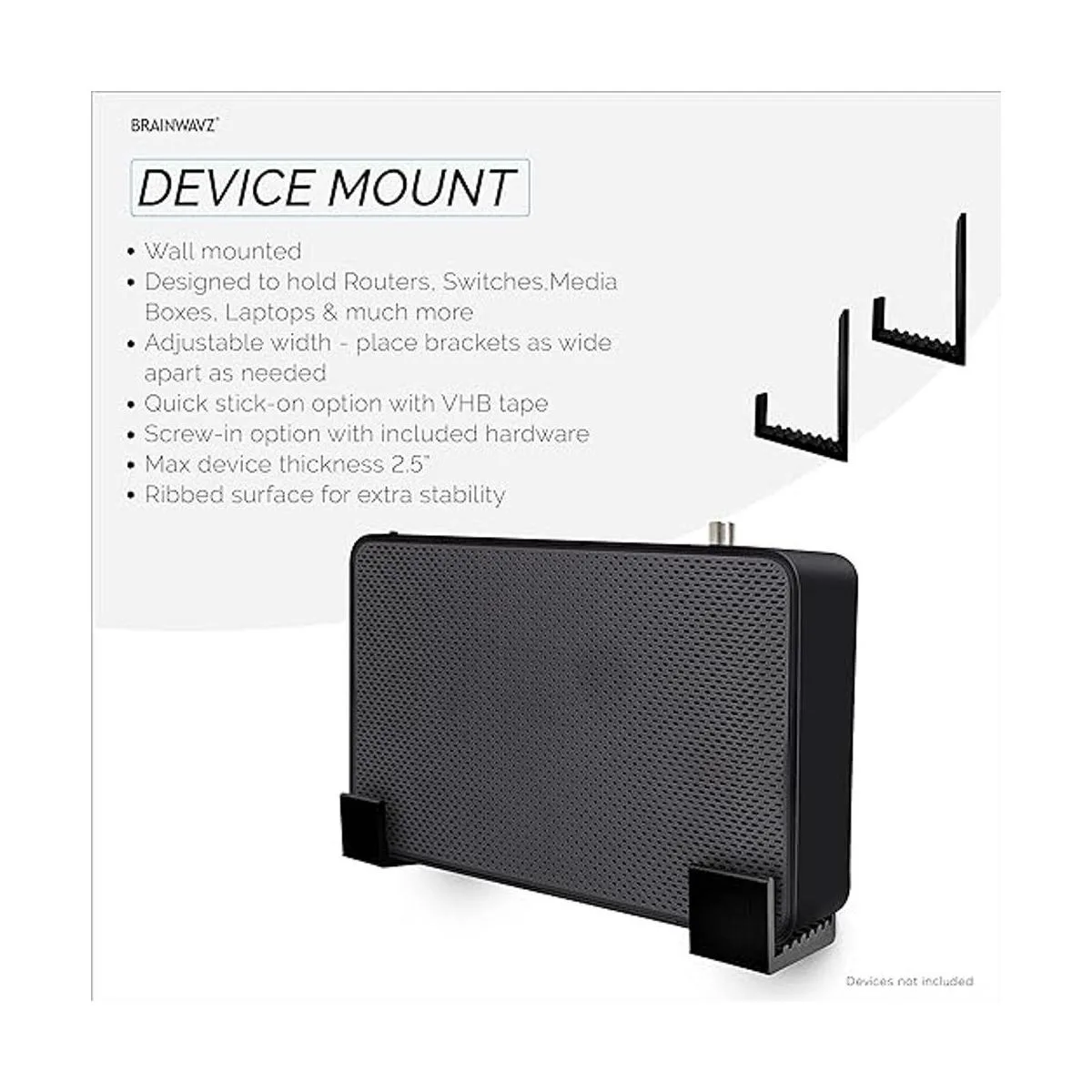 Brainwavz Caja de cables de 2.5 pulgadas, adhesivo y atornillado, para enrutadores, portátiles, módem, WiFi de malla, Apple TV, interruptor de red y más, para dispositivos de hasta 2.5 pulgadas 2.480 in de ancho, negro