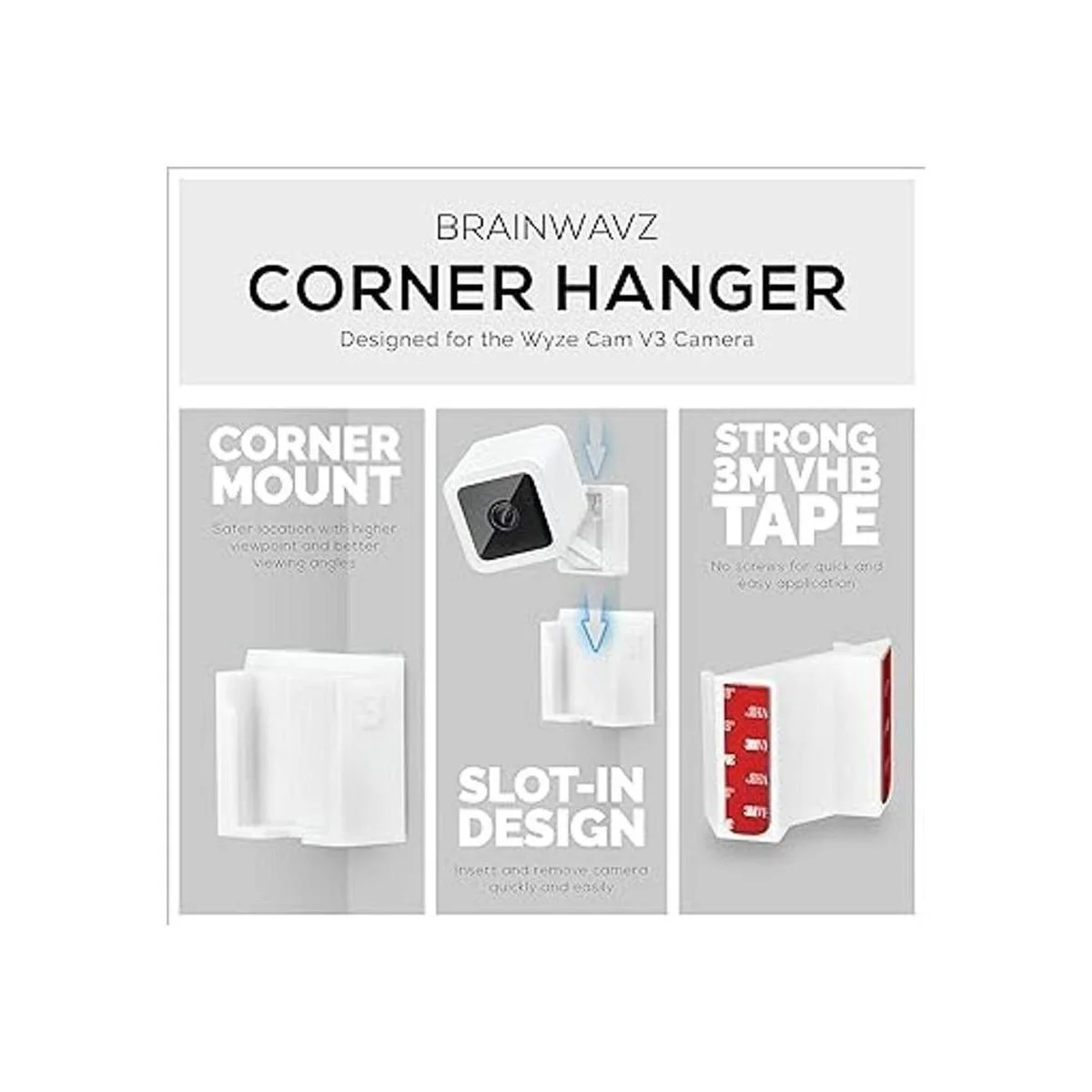 Brainwavz Soporte de esquina sin tornillos para Wyze Cam V3, VHB Stick On Fácil de instalar, no necesita herramientas, sin desorden, sin perforación, fuerte montaje adhesivo, color blanco