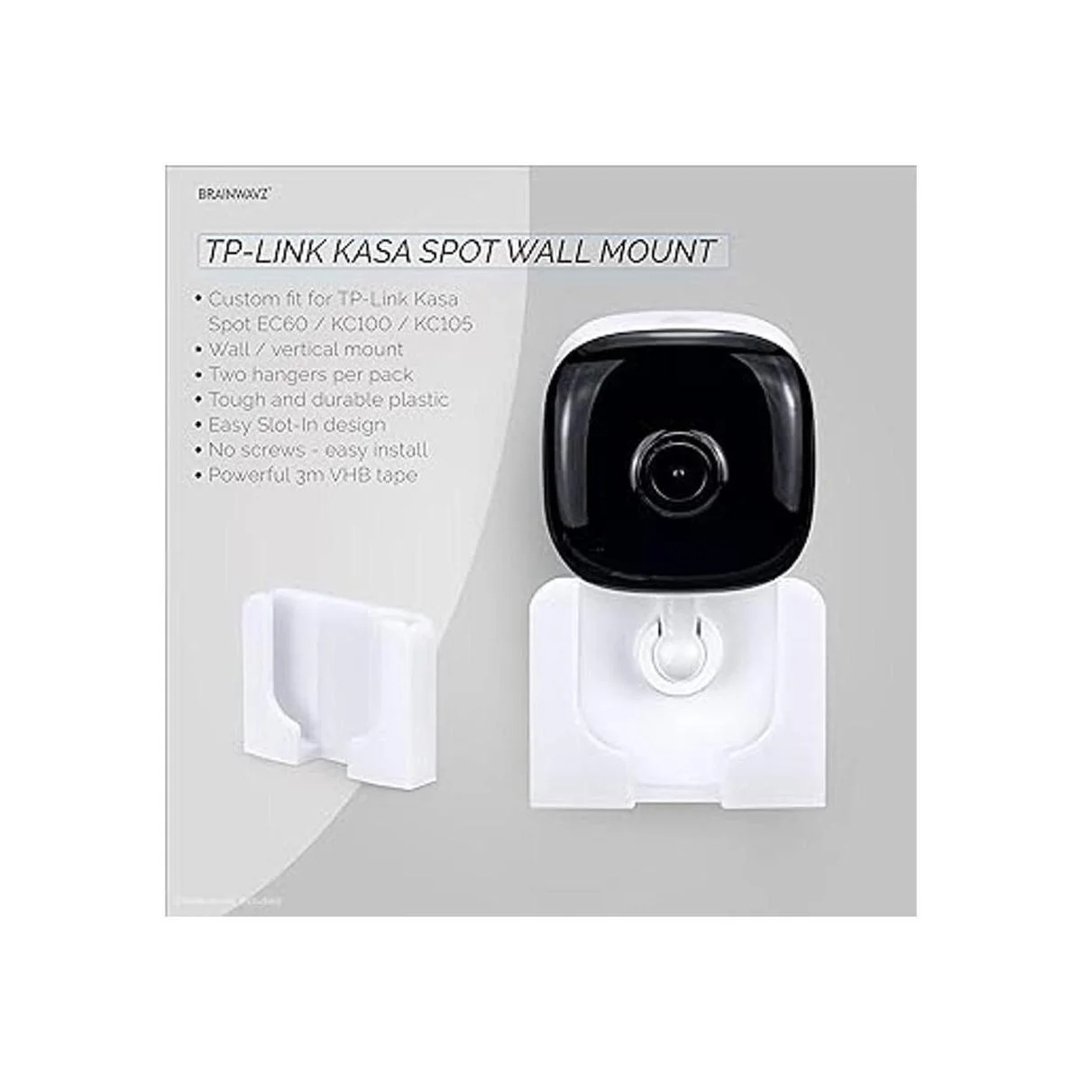 Brainwavz Soporte de pared adhesivo para cámara de punto TPLink KASA EC60, KC100, KC105 paquete de 2 sin complicaciones, cinta fuerte 3M VHB, sin tornillos, sin ensuciar, soporte blanco