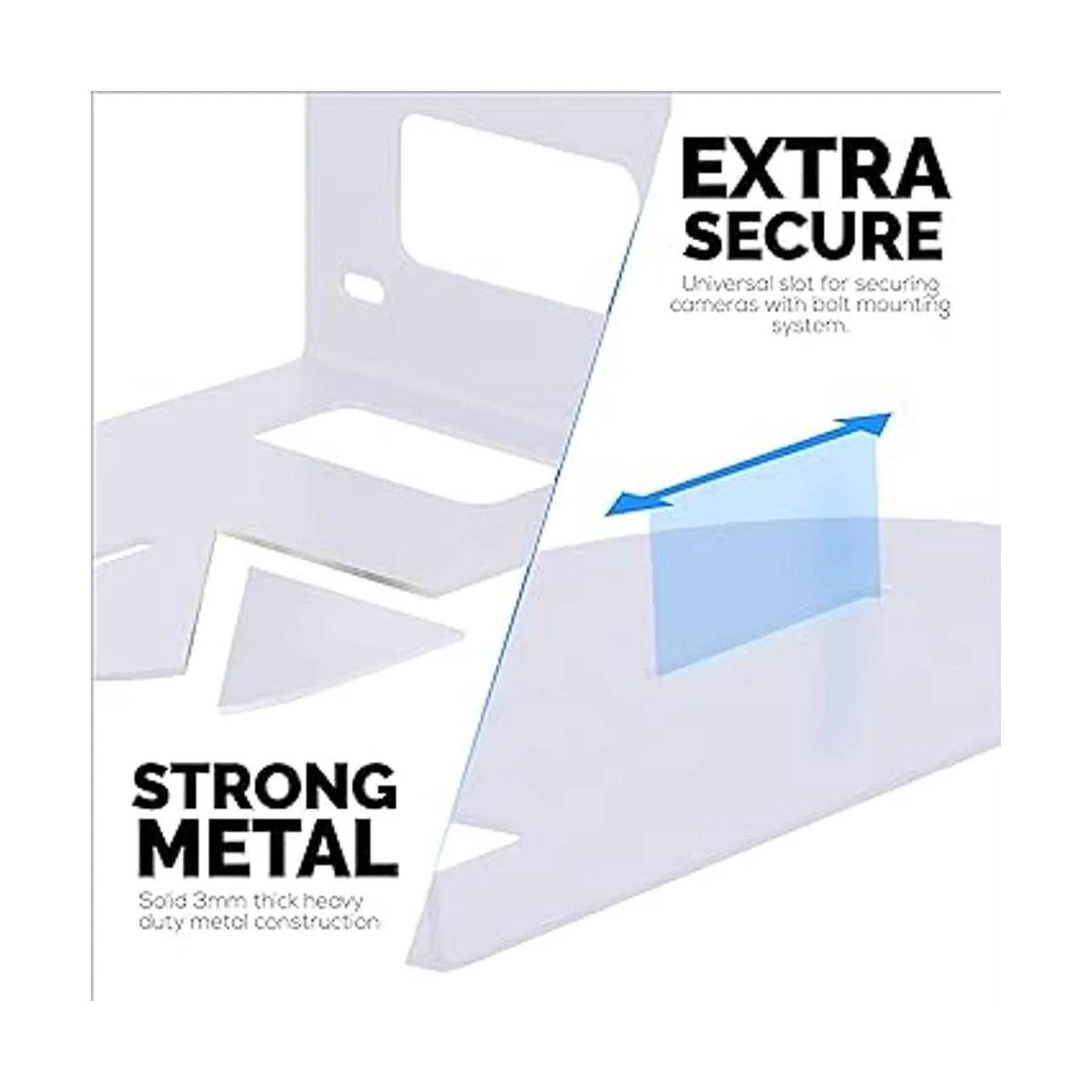 Metal sólido: hecho de una sola hoja de metal sólido y doblado en la forma perfecta que no solo se ve bien, sino que mantendrá tu cámara segura en todo momento. Los estantes están pintados con un alto estándar y acabados con bordes lisos.