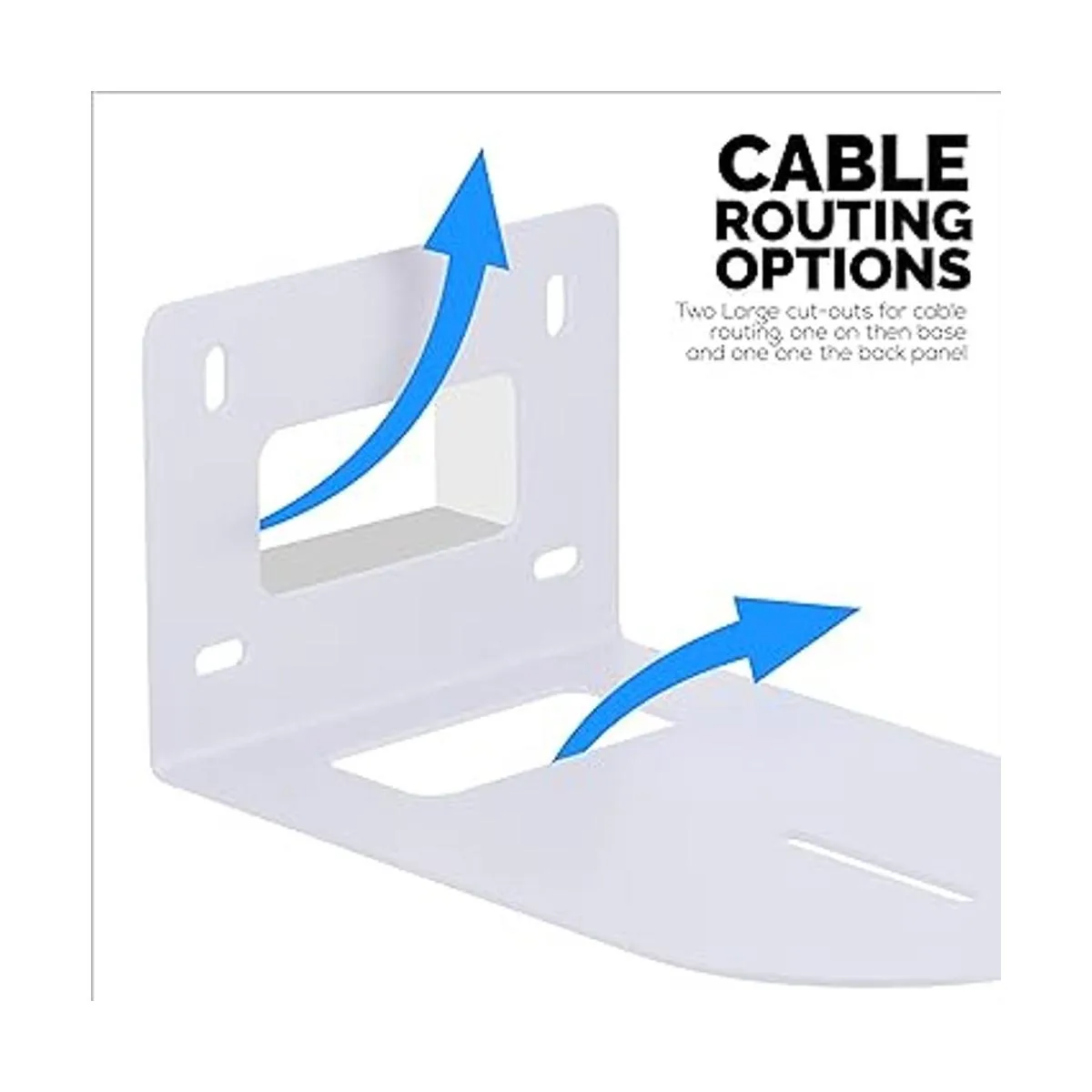 Acceso al cable: el soporte incluye dos grandes recortes, dando una amplia gama de opciones de enrutamiento de cables. El panel trasero permite un montaje profesional y discreto en paredes con cables incrustados/enrutados, mientras que el corte de la base permite un fácil paso de cables de alimentación y red, para una instalación rápida y fácil.