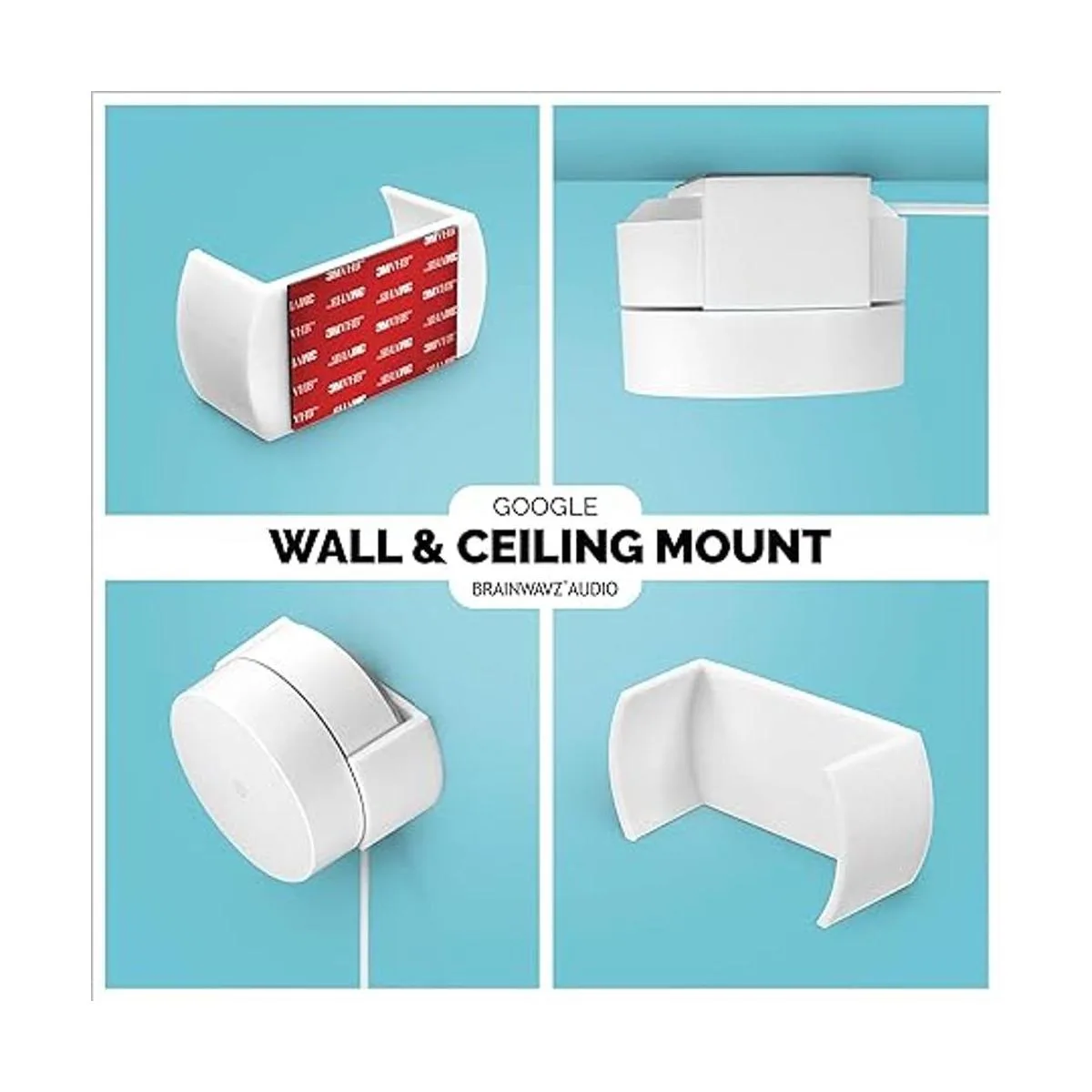 Brainwavz Soporte de pared y techo sin tornillos para sistema de malla para Google WiFi Home, no requiere herramientas, fácil de instalar, sin desorden, sin perforación, fuerte VHB Adheasivo, color blanco