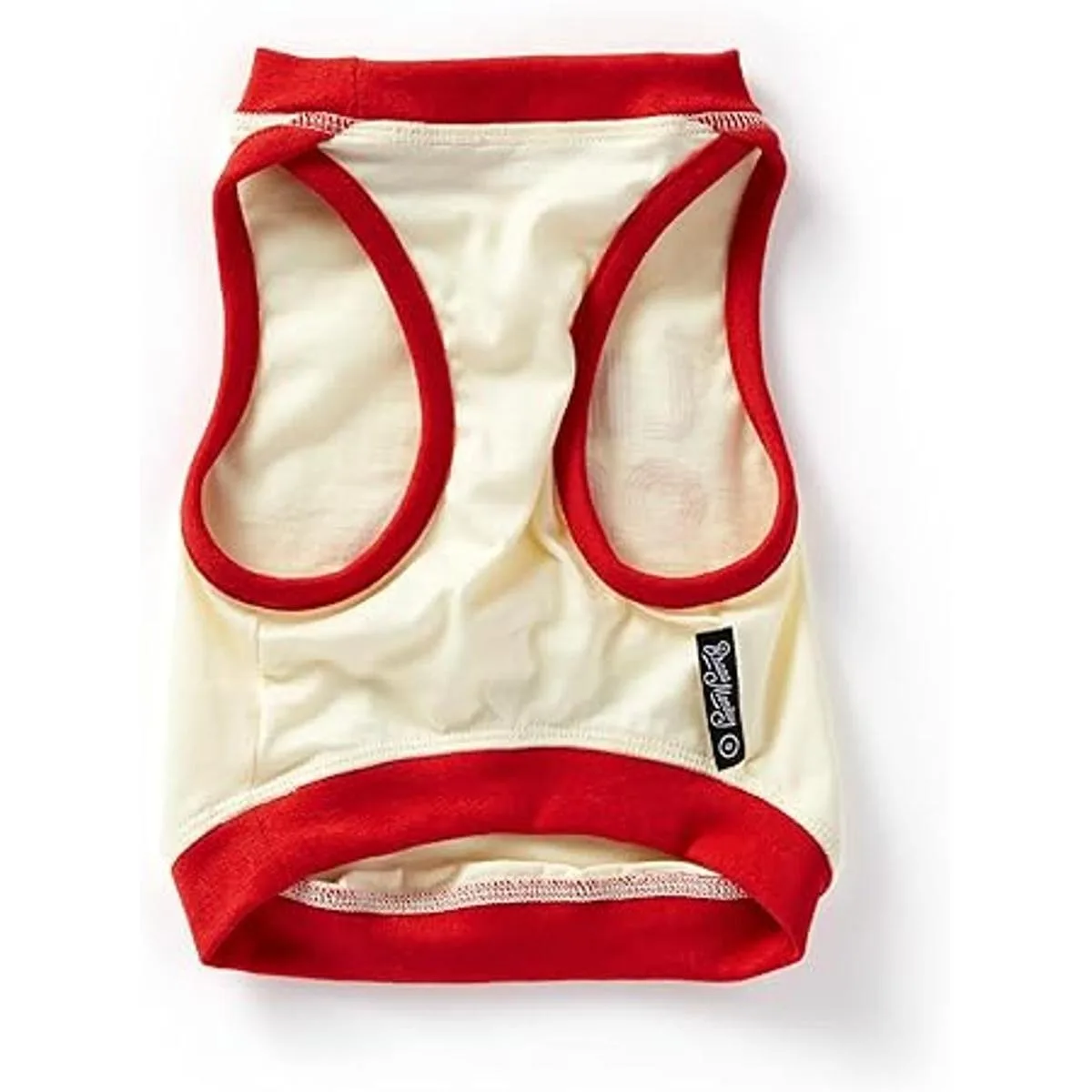Camiseta de tirantes estilo años 70 fabricada con algodón preencogido y cuello en contraste.