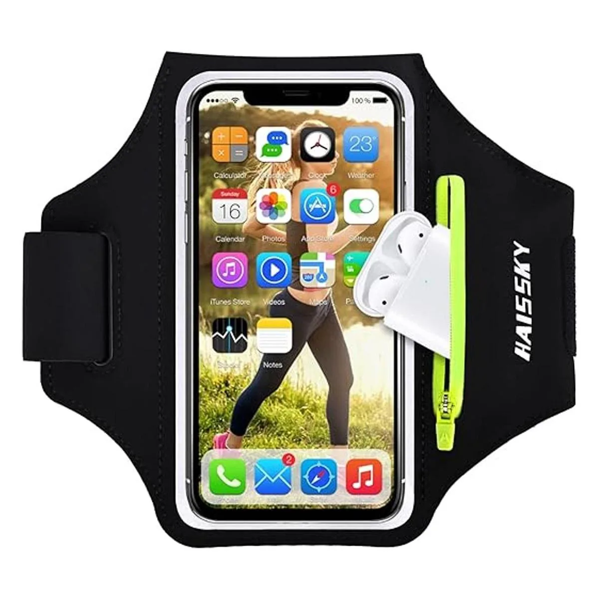 Brazalete con bolsillo con cremallera para Airpods: la mejor parte de este brazalete es una bolsa adicional para guardar tus Airpods, llaves de coche o artículos preciosos y otros dispositivos inteligentes cuando llevas sobre la marcha para hacer ejercicio. No tienes que preocuparte por perderlo durante tus entrenamientos.