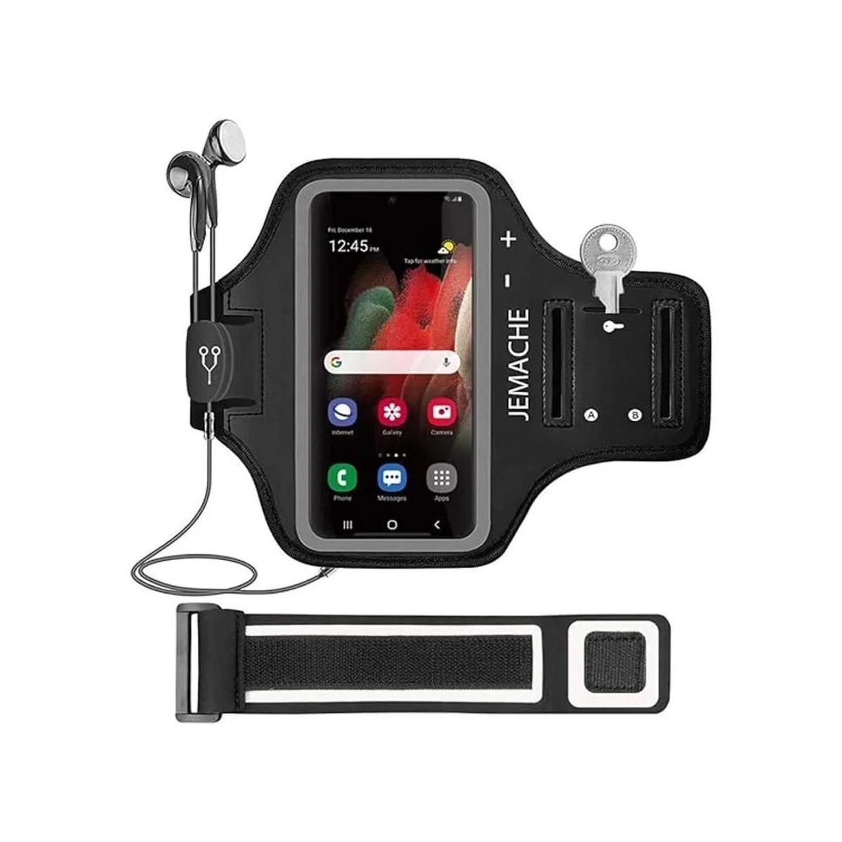 Práctica función adicional: el brazalete está impreso con una tira reflectante para mantenerte visible en condiciones de poca luz. Diseños muy íntimos, botón de volumen , , bolsillo para llaves integrado, bolsillo para tarjetas. Además, el material es resistente al sudor, resistente al agua y lavable.