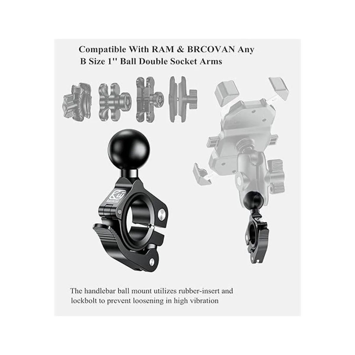 BRCOVAN Base de montaje de manillar de bola de aleación de aluminio de 1.0 in, sin herramientas, compatible con soportes RAM de tamaño B, bola de 1.0 in, brazo de doble enchufe y soporte de teléfono para bicicleta R18B