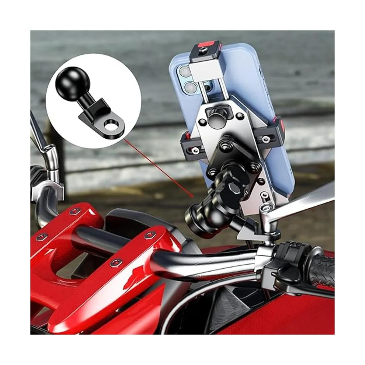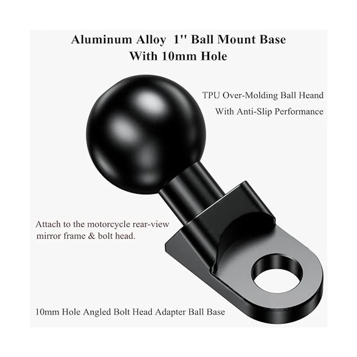 Esta base de montaje de bola de 1 pulgada cuenta con un agujero de montaje de 0.394 in diseñado para fijarse al marco del espejo retrovisor de la motocicleta y a la cabeza del tornillo.