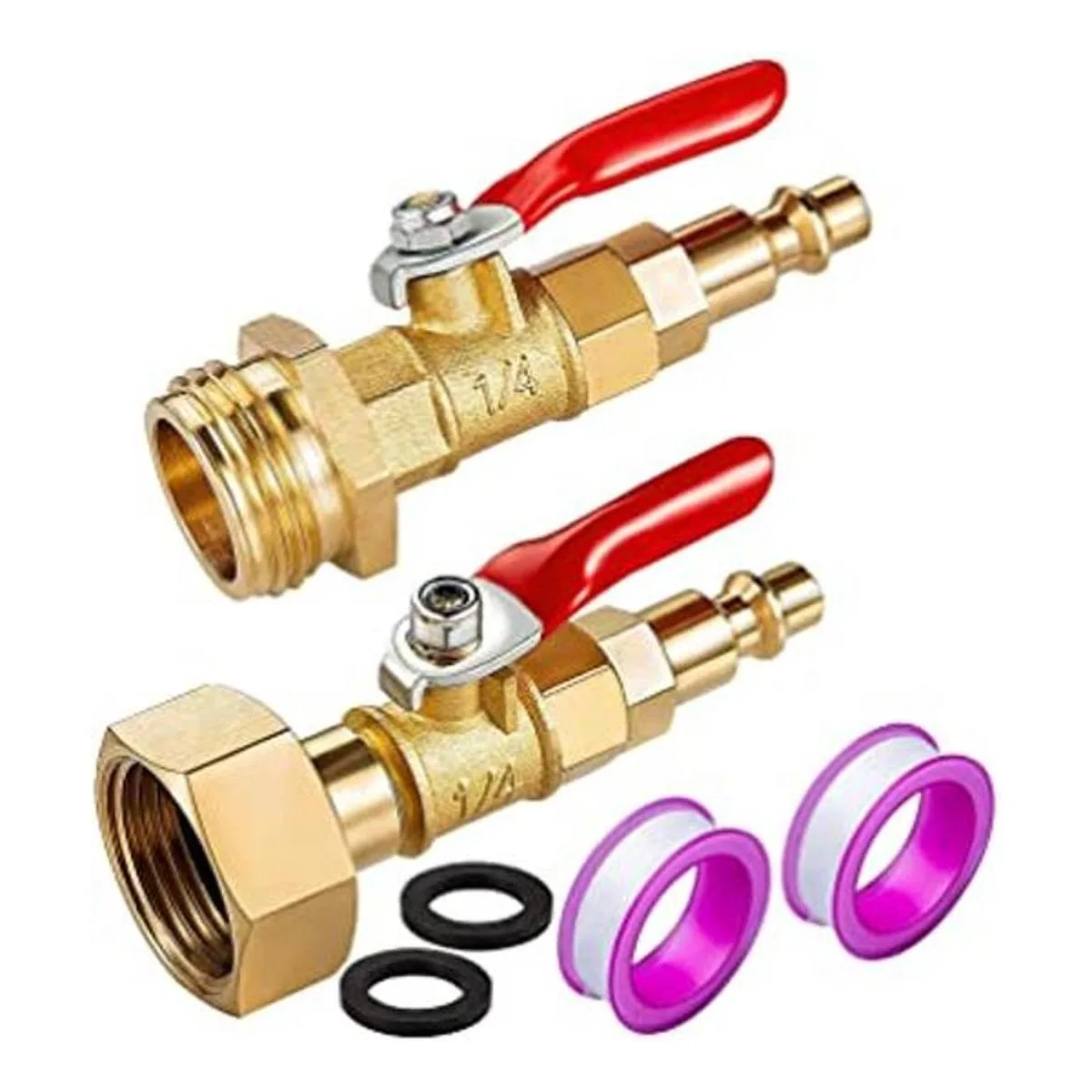 Breezliy 2 adaptadores de latón para invierno, enchufe de conexión rápida macho de 14 pulgadas y rosca macho de 34 pulgadas y válvula de bola de 14 pulgadas con 2 arandelas para remolques de caravana de invierno