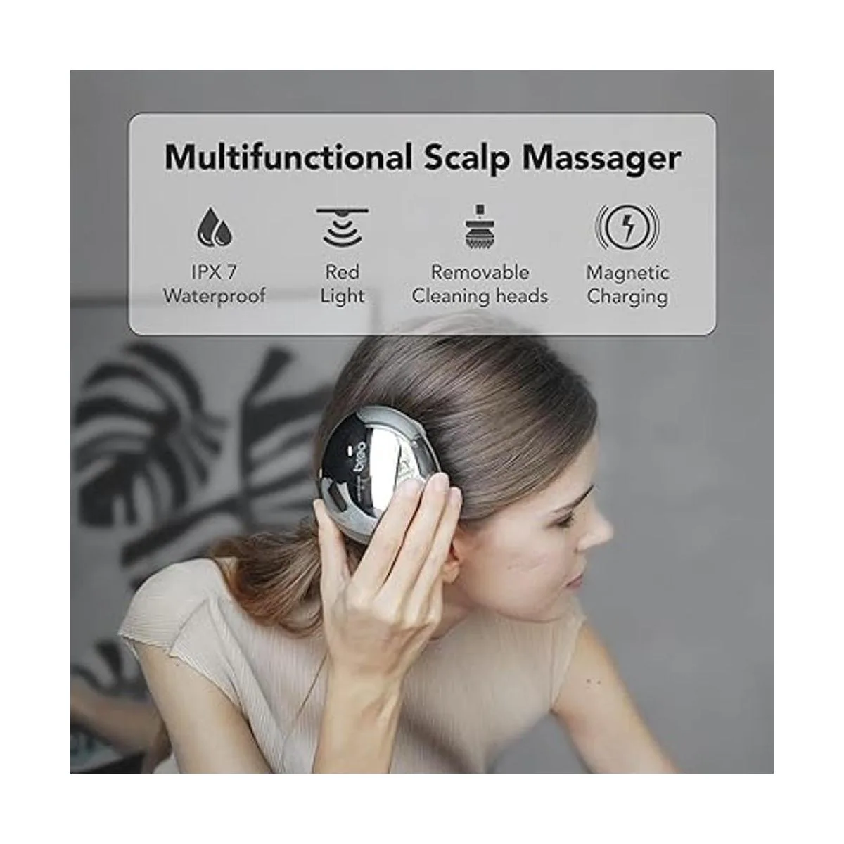 Breo Mini masajeador portátil de cuero cabelludo, IPX7 impermeable recargable para el cuero cabelludo relajado, herramienta de alivio del estrés con base de carga de madera de bambú, nodos de masaje extraíbles plata con base