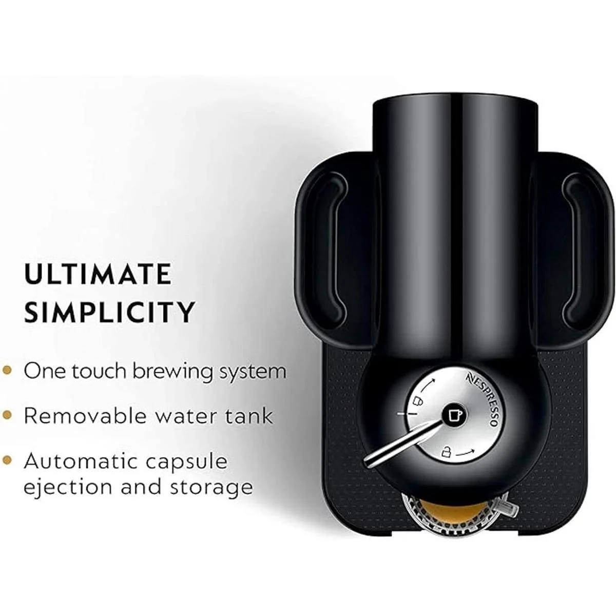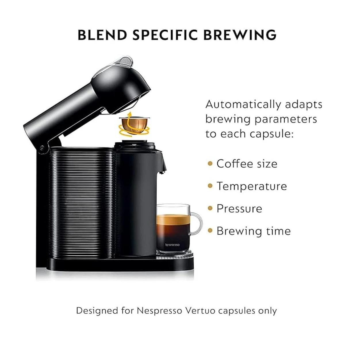 Máquina automática de café/café exprés: Sé capaz de preparar tazas de café común o exprés en cápsula a nivel de mesero con solo pulsar un botón. El mecanismo de pulsación única produce el mejor resultado en tazas para cualquier estilo de café común o exprés que elijas. Diseñado para uso exclusivo de cápsulas Nespresso Vertuo.