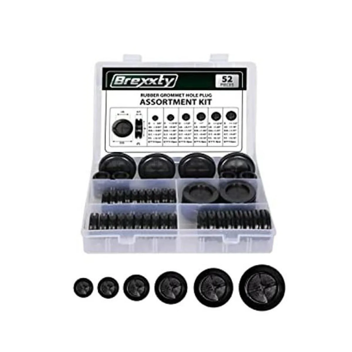 Brexxty 52 ojales de goma para cableado negro Kit de ojales de goma en 6 tamaños surtidos de agujeros de taladro de 58 pulgadas, 1316 pulgadas, 78 pulgadas, 1 pulgadas, 1 316 pulgadas, 1 12 pulgadas, tapones de goma para reparación de automóviles y hardware
