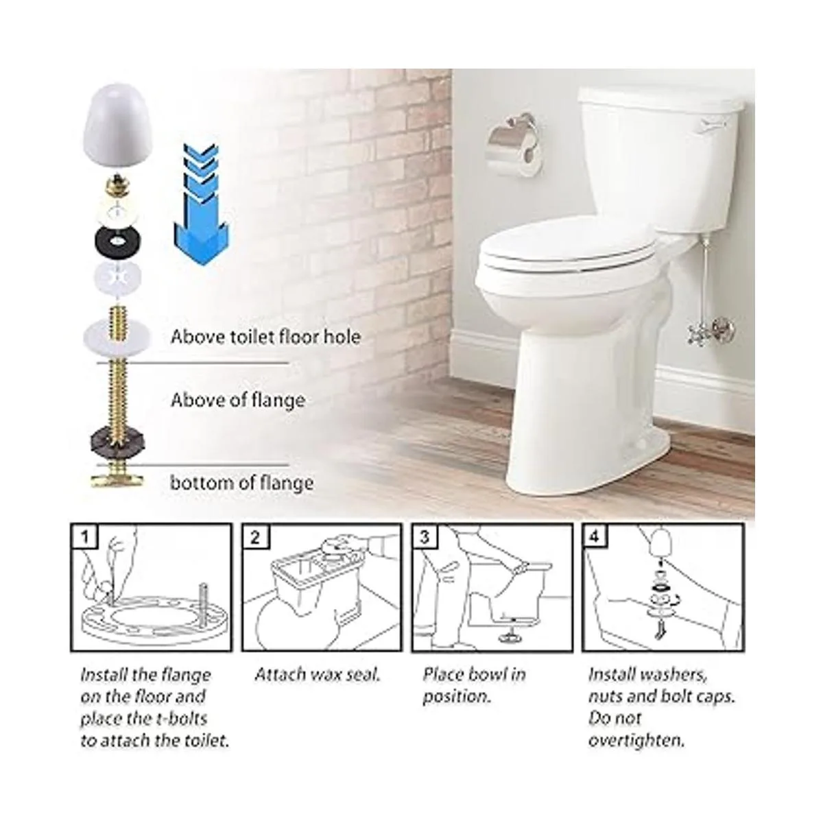 Especificaciones del producto: diámetro de la brida del inodoro: 6.88 pulgadas, grosor: 0.43 pulgadas. Diámetro del anillo de cera del inodoro: 5.4 pulgadas, grosor: 0.92 pulgadas. El paquete incluye pernos, arandelas, retenedores, tuercas y tapas de pernos.
