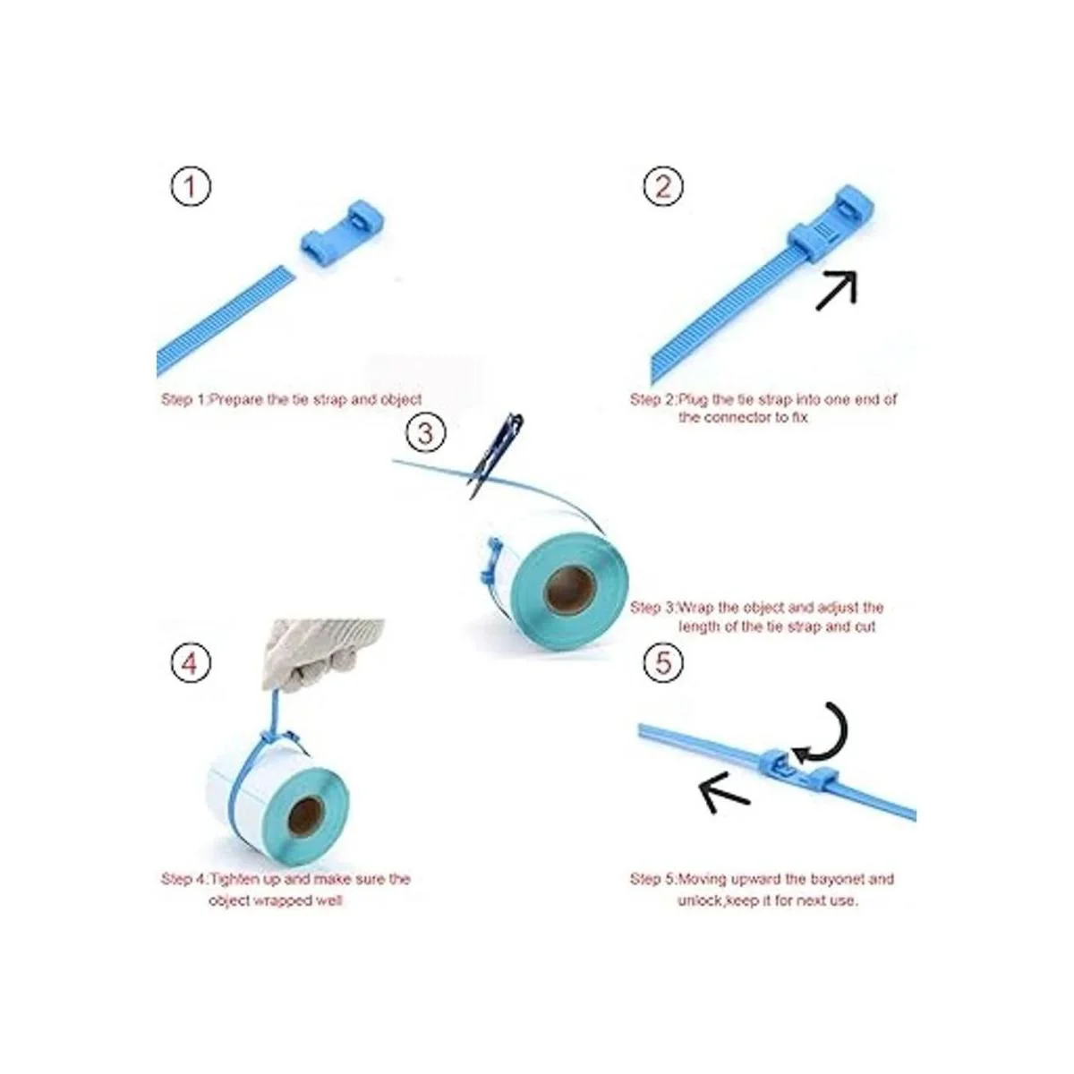 Bridas de cremallera, bridas de nailon para encuadernación de carga de equipaje, rollo de cables ultra largo de 26.2 ft con conectores, sin tijeras, 1 unidadpaquete