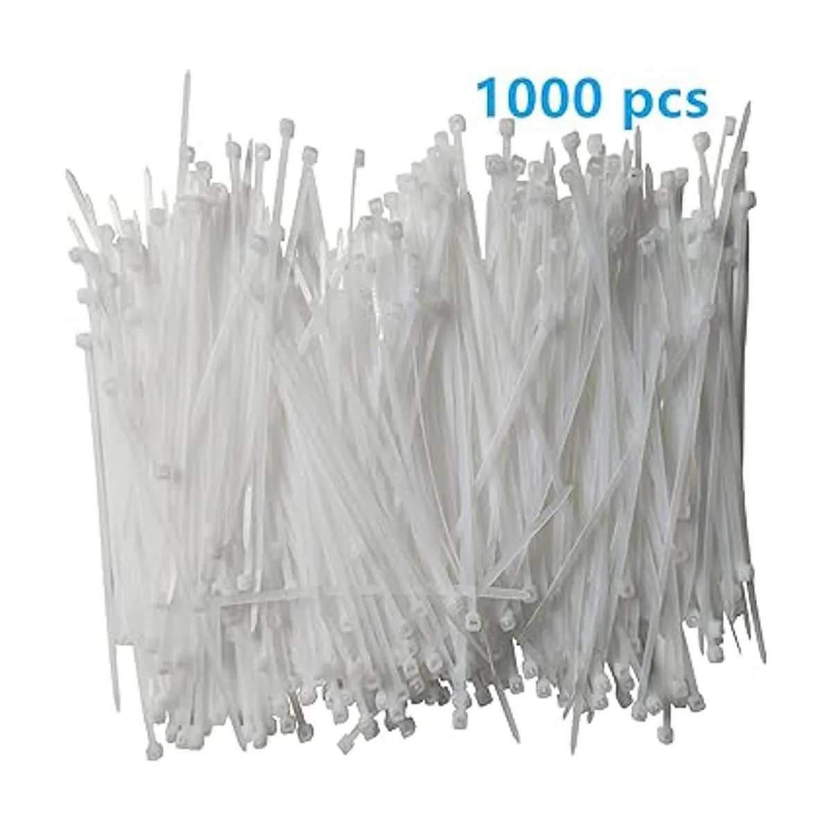 Bridas de cremallera de 6 pulgadas, 1000 bridas de cremallera para cable con resistencia a la tracción de 18 libras, bridas de cable blancas, envolturas de nailon autoblocantes para interiores y exteriores 6 pulgadas, 1000 unidades, blanco