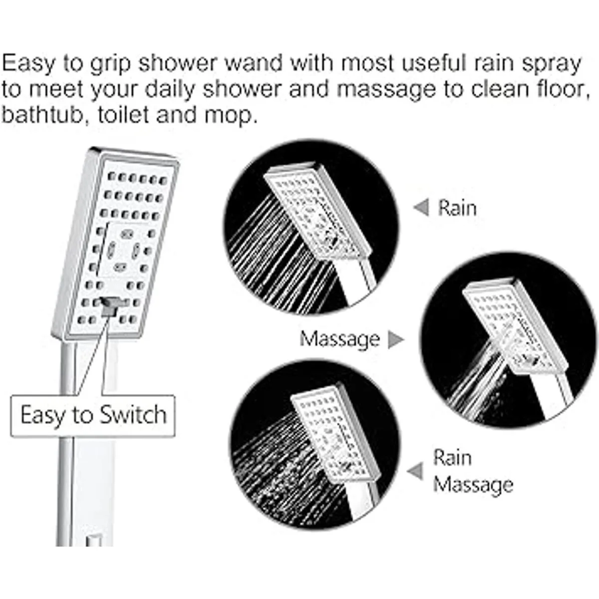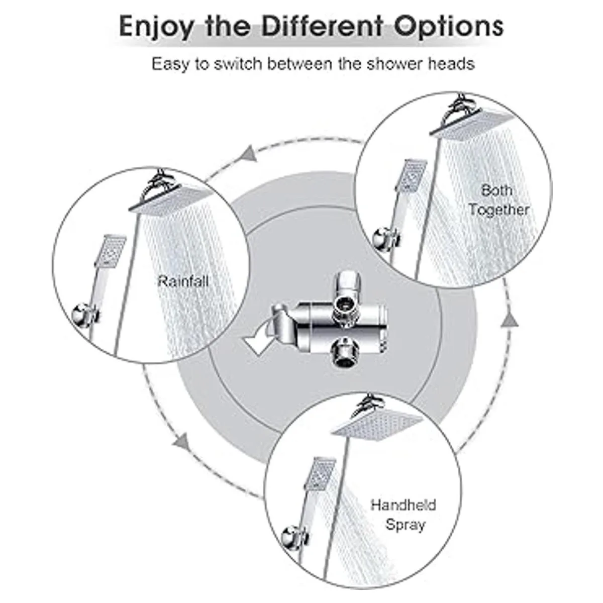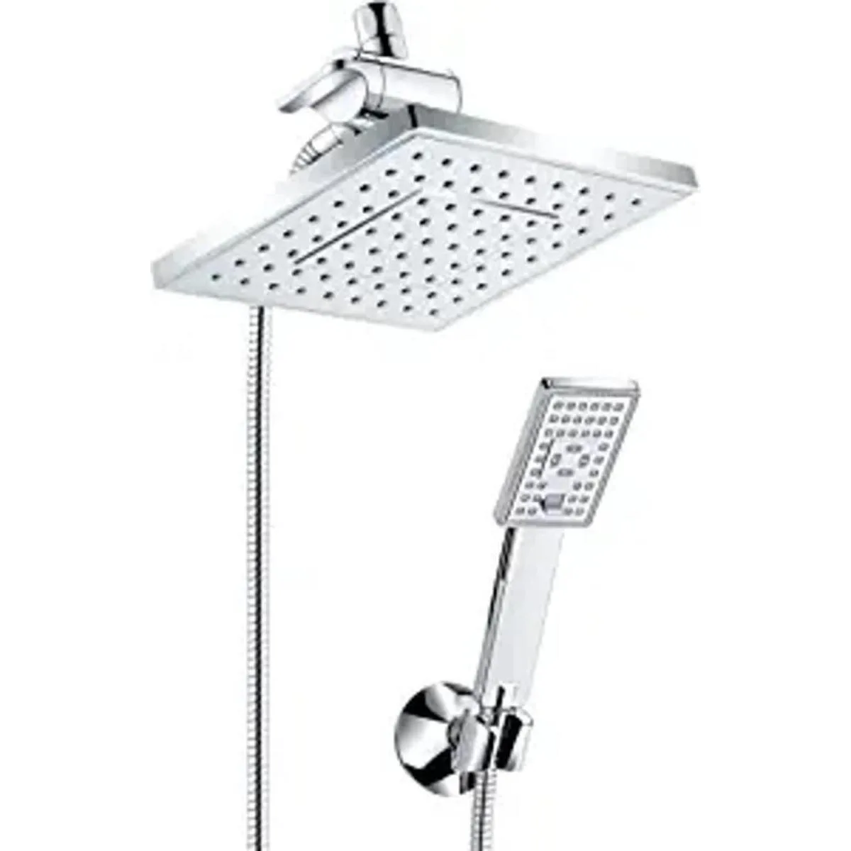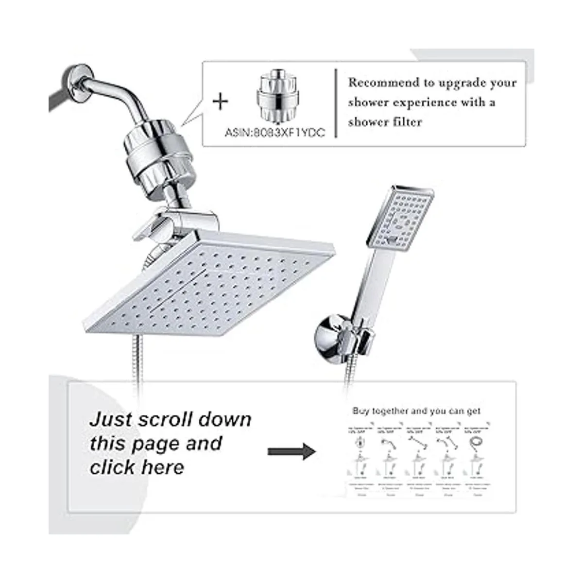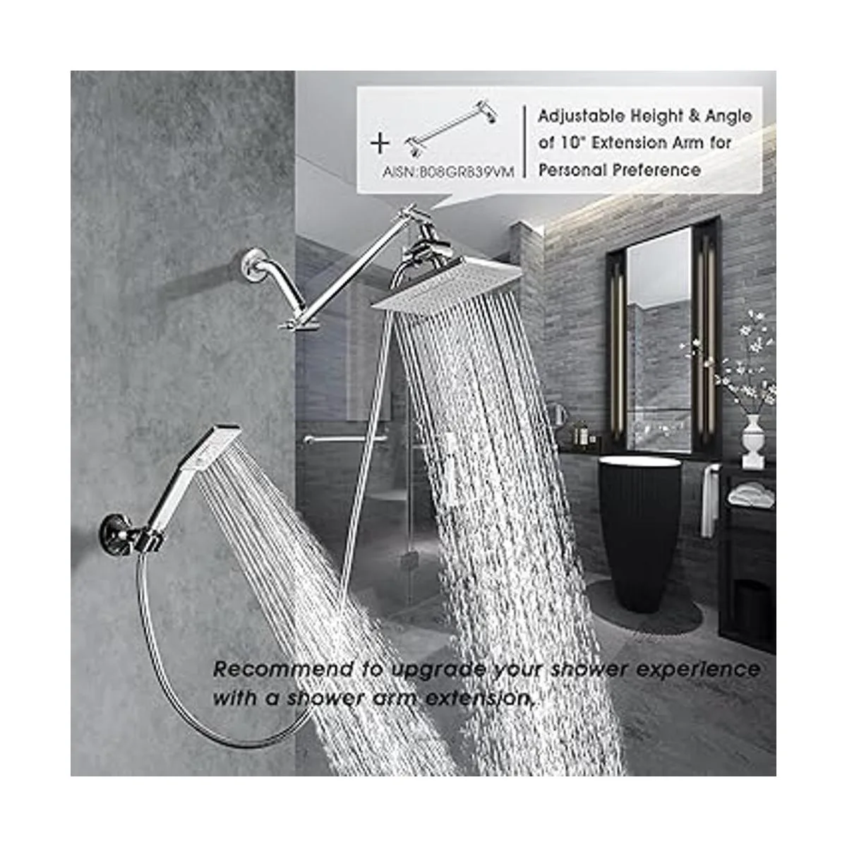 El cabezal de ducha cuadrado de 8 pulgadas mejora tu experiencia de ducha: Con dos cabezales de ducha diferentes y únicos un cabezal de ducha de lluvia y un cabezal de ducha de mano de 3 configuraciones, este juego incluye todo lo que necesitas para actualizar tu sistema de ducha básico sin necesidad de herramientas.