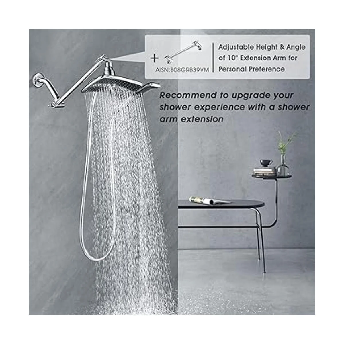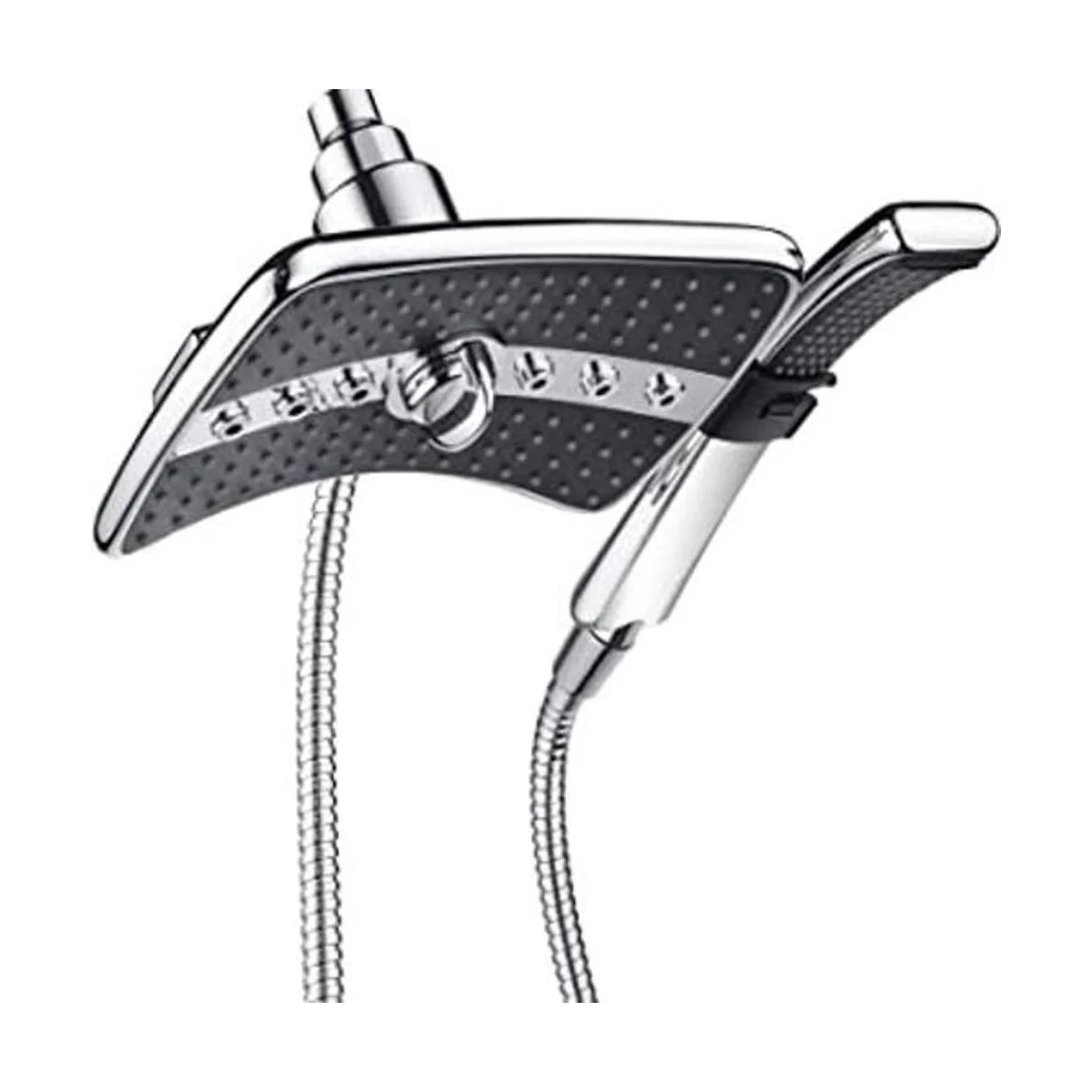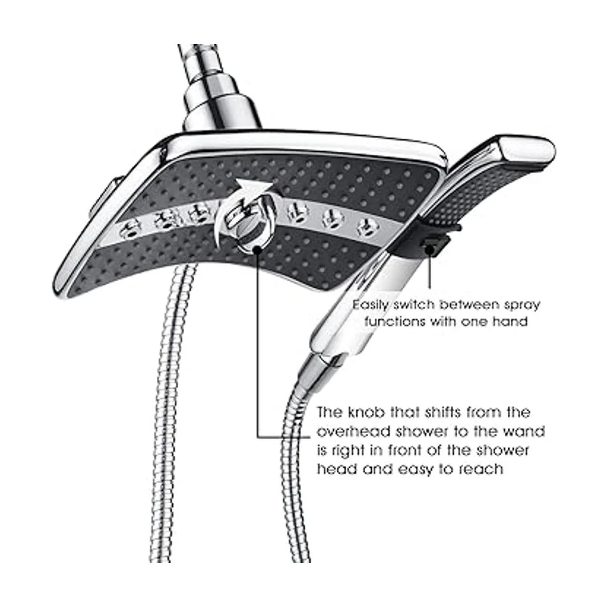 Cabezales de ducha duales: cuerpo cromado cabezal de ducha de lluvia cara negra con spray de mano, cabezal de ducha fijo con dos ajustes de pulverización. No incluye brazo de ducha en el embalaje