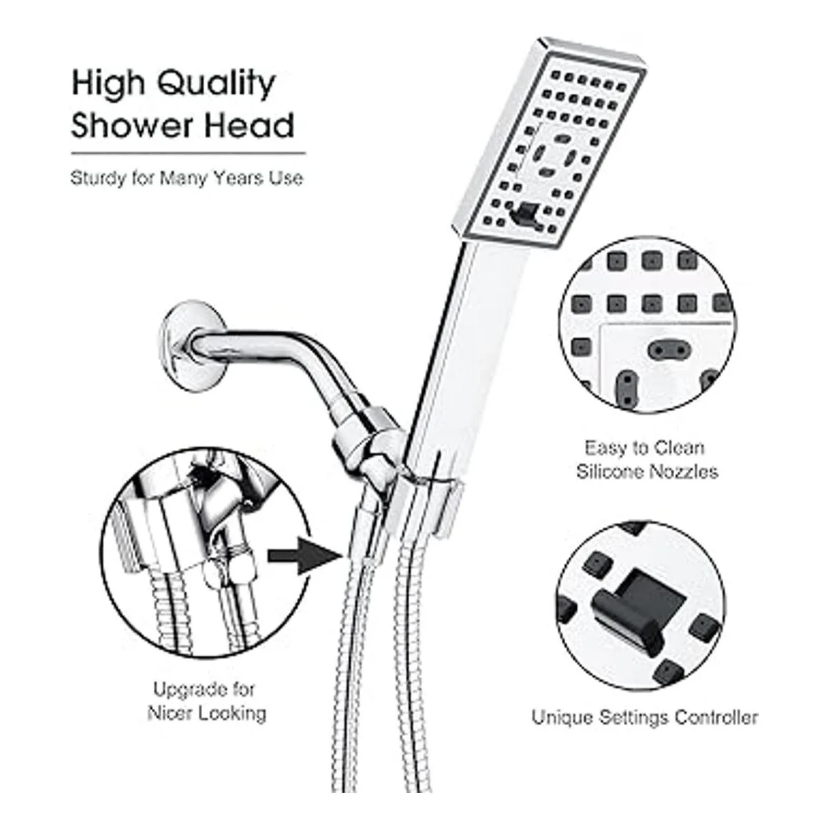 Cabezal de ducha cuadrado de alta presión: el diseño ligero en forma de L hace que sea una herramienta práctica tanto en la bañera como en la ducha. Nuestras boquillas de goma de silicona evitan la acumulación de minerales y son fáciles de limpiar, construcción ABS con tratamiento de superficie premium que cuenta con moda, alta resistencia y resistencia al calor