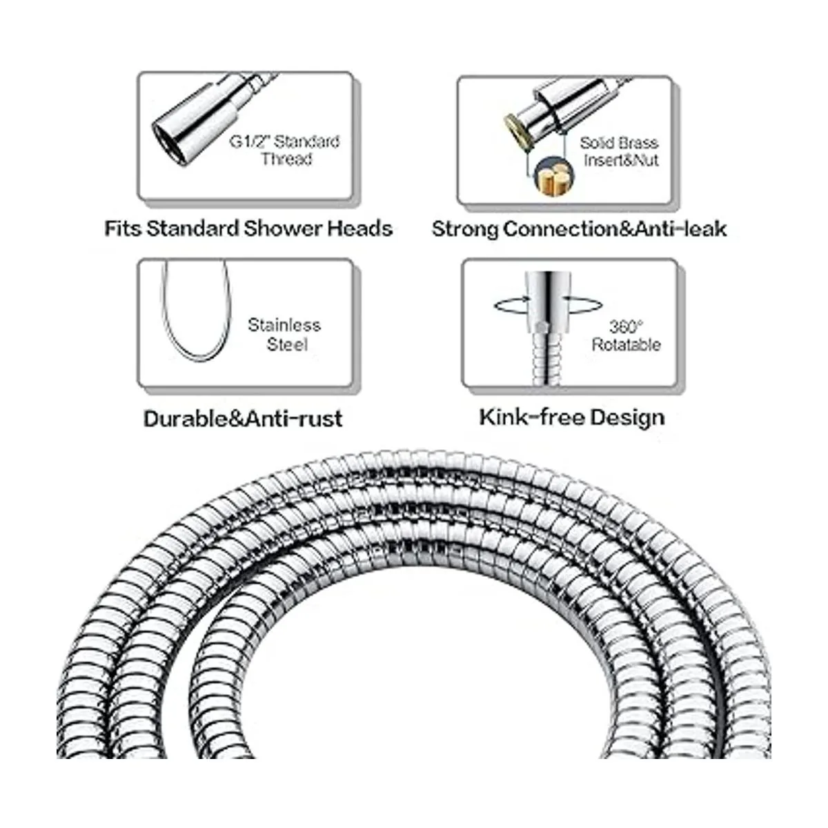 BRIGHT SHOWERS Juego de cabezal de ducha de mano de alta presión con manguera de ducha flexible de 60 pulgadas y soporte de montaje de brazo de ducha ajustable, 3 ajustes de rociado, cromo