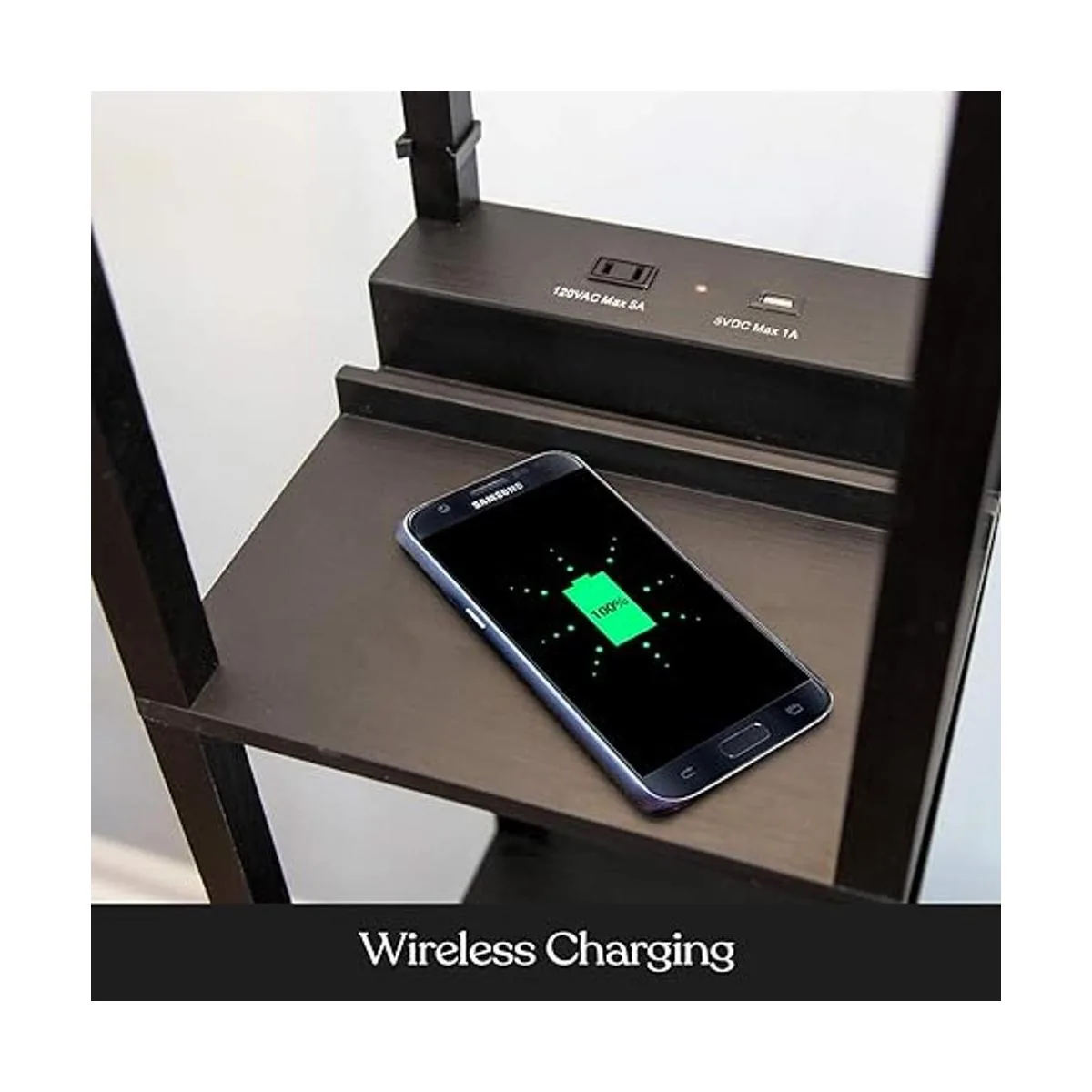 Lámpara de pie con puertos USB, estación de carga inalámbrica y salida: si tu smartphone, tableta o portátil soporta carga inalámbrica Google el modelo y carga inalámbrica, se puede utilizar la almohadilla de carga Brightech Maxwell. Funciona como mesita de noche para garantizar dispositivos completamente cargados por la mañana o como una forma de mantener la carga en la oficina. La lámpara de oficina también cuenta con una toma de corriente estándar enchufe y un puerto USB para acomodar dispositivos no compatibles con la carga inalámbrica.