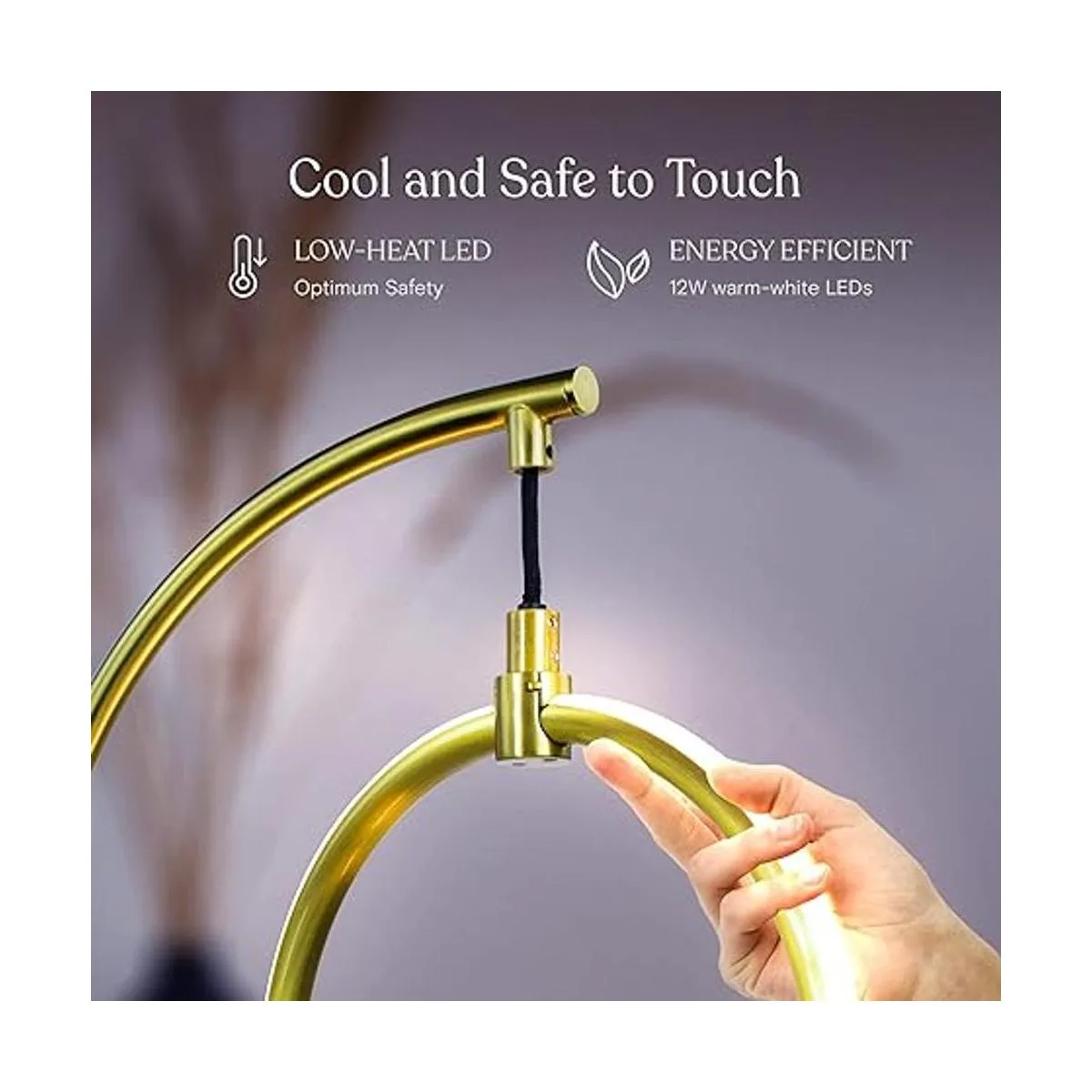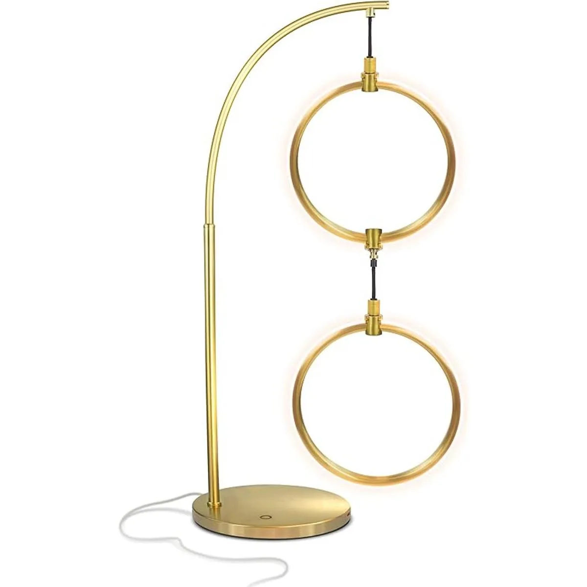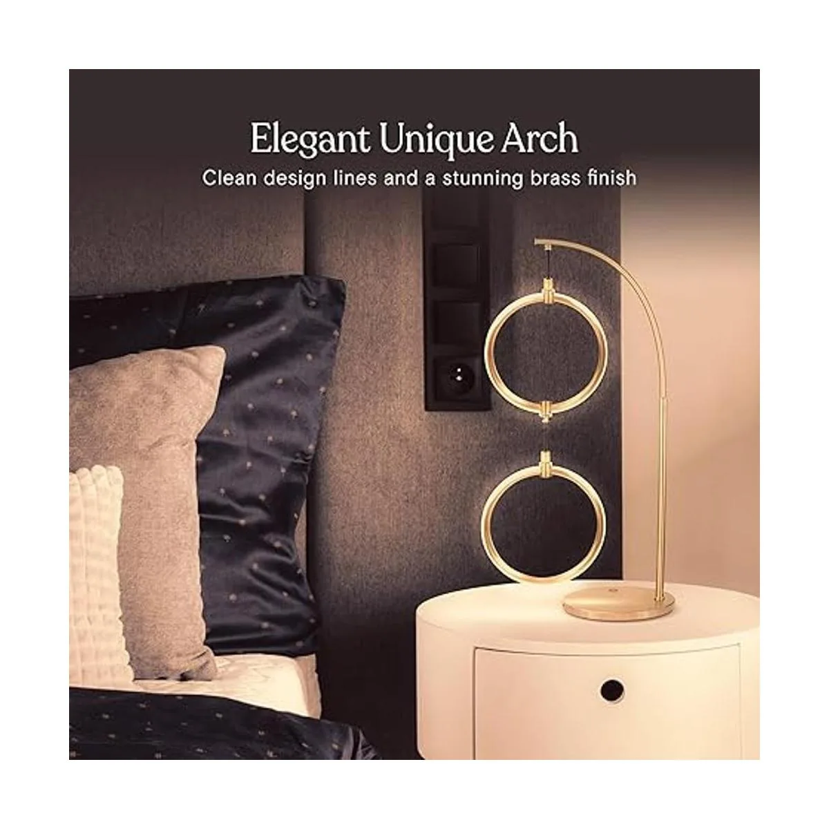 Brightech Nova Lámpara de mesa moderna Lámpara de escritorio de arco contemporáneo con colgante de estilo anillo de 2 círculos, mesita de noche compatible con Alexa junto al sofá con poste de arco que combina con decoración de sala de estar, latón
