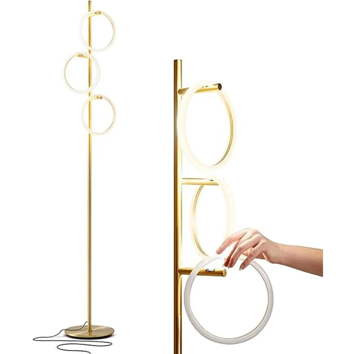 Brightech Saturn Lámpara de pie LED, diseño único que combina con decoración moderna y contemporánea, lámpara alta de 3 luces para sala, habitación y oficina, latón color dorado