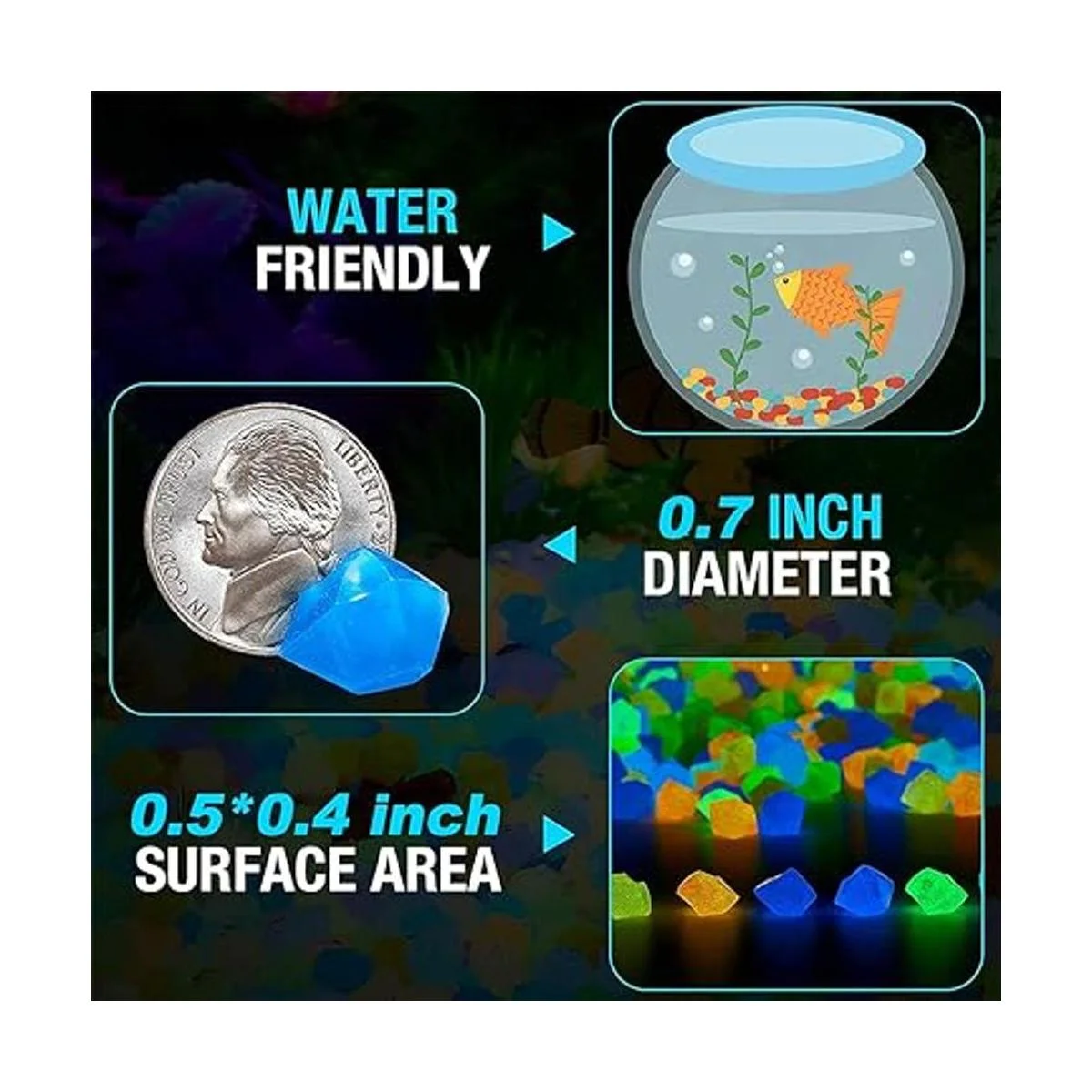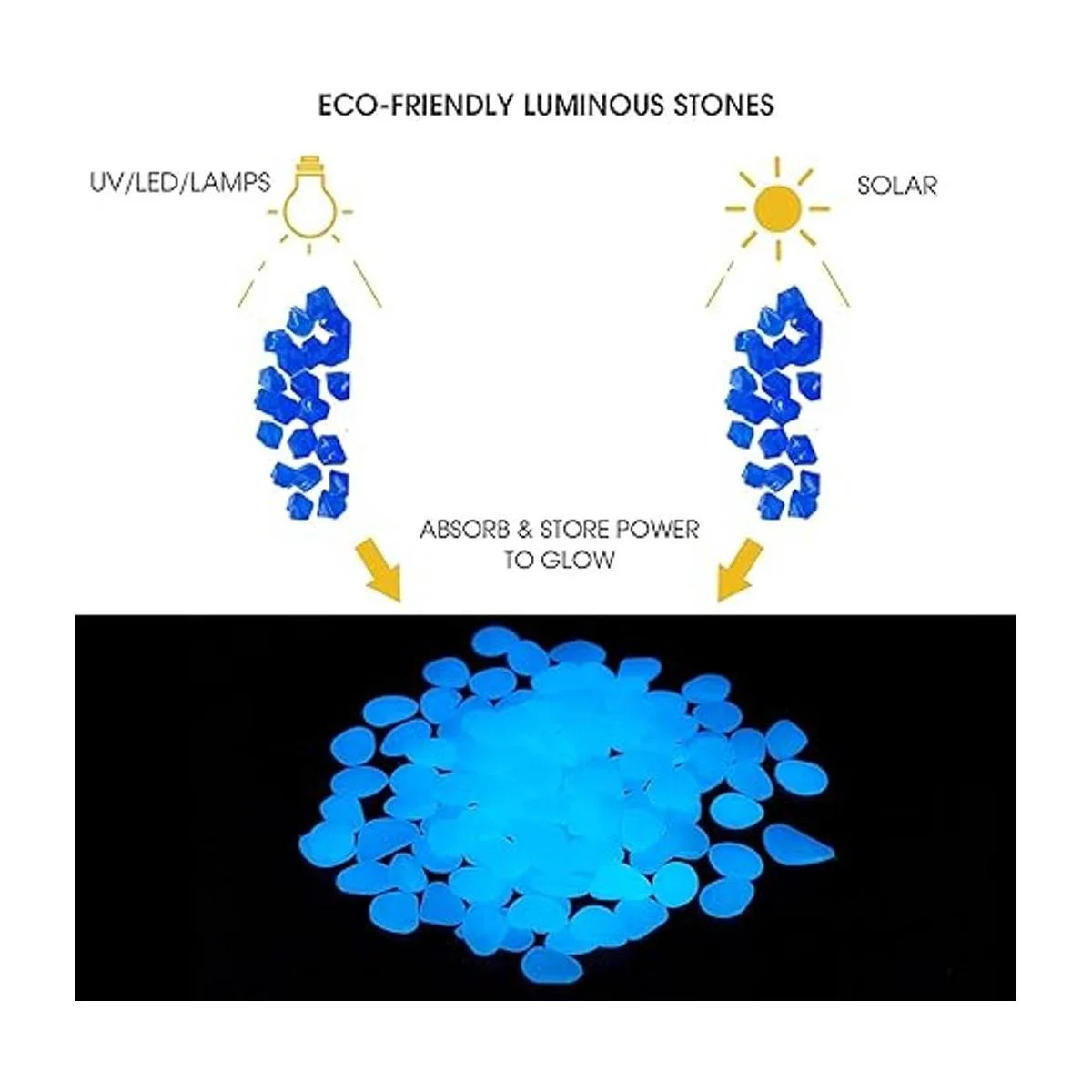 Brillan en las rocas oscuras, piedras brillantes no tóxicas para uso como accesorios de acuariopecera o decoración interiorexteriorcaminojardín 100 unidades, azul joya