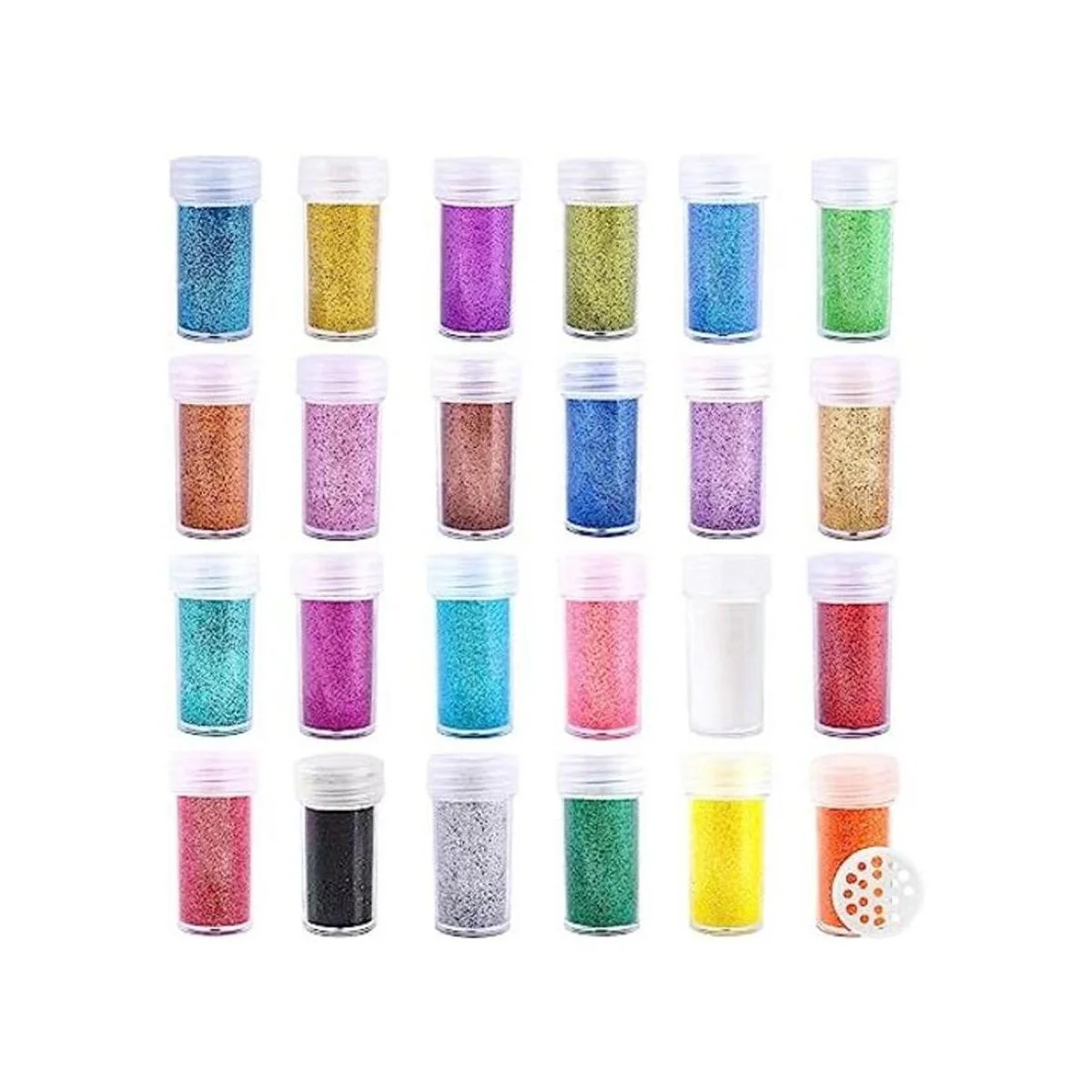 Brillantina extra fina, juego de 24 colores para el cuerpo cosmético, brillo de labios, brillo de labios, brillo de maquillaje, slime, vaso y resina epoxi, manualidades, coctelera de polvo con purpurina suelta
