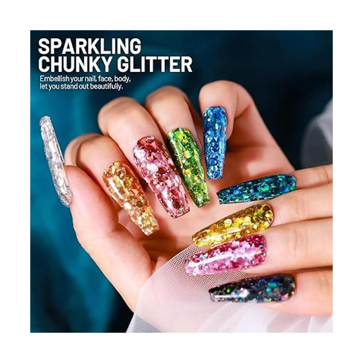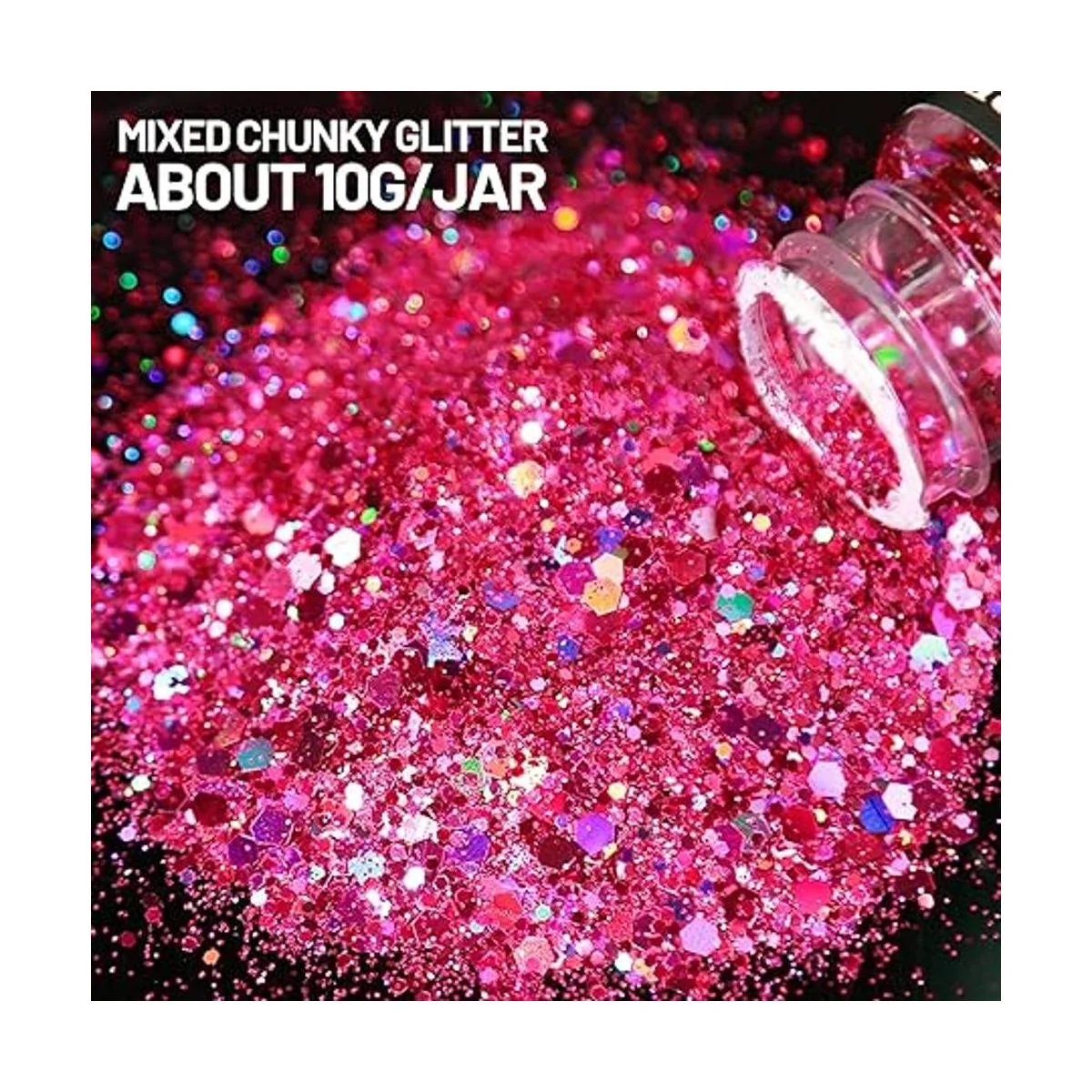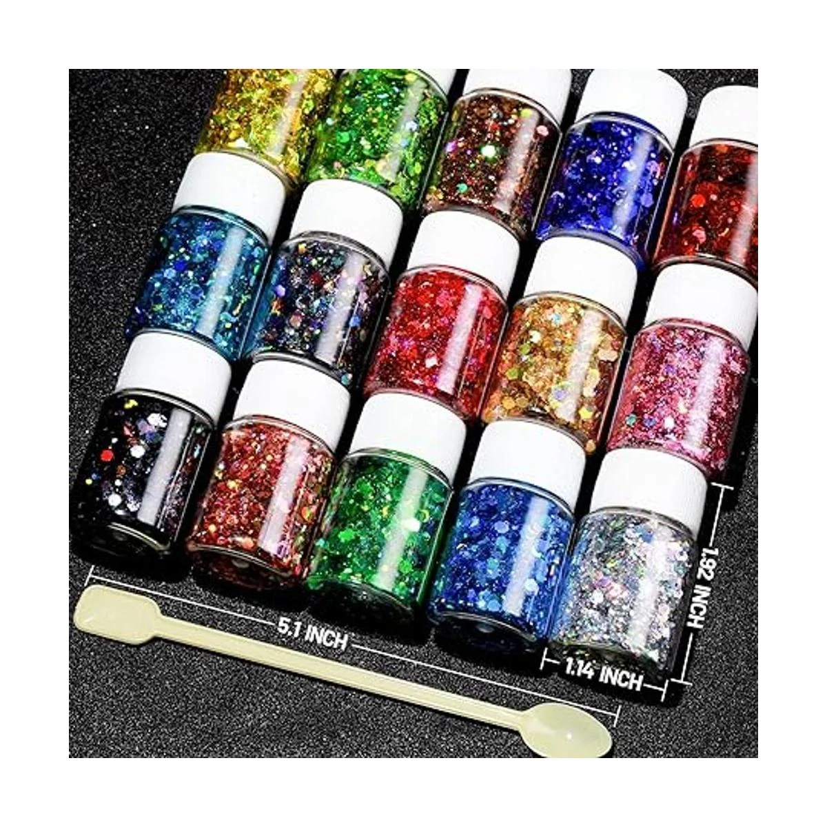 Purpurina artesanal de alta calidad: purpurina hexagonal mixta, desde polvo fino hasta purpurina gruesa, ayuda a crear un efecto brillante natural. Hecho de plástico de alta calidad, no se decolora, seguro, se puede aplicar directamente a uñas, cara, cuerpo, cabello. Aproximadamente 5.29 oz en total, te ayuda a terminar muchos proyectos de arte.