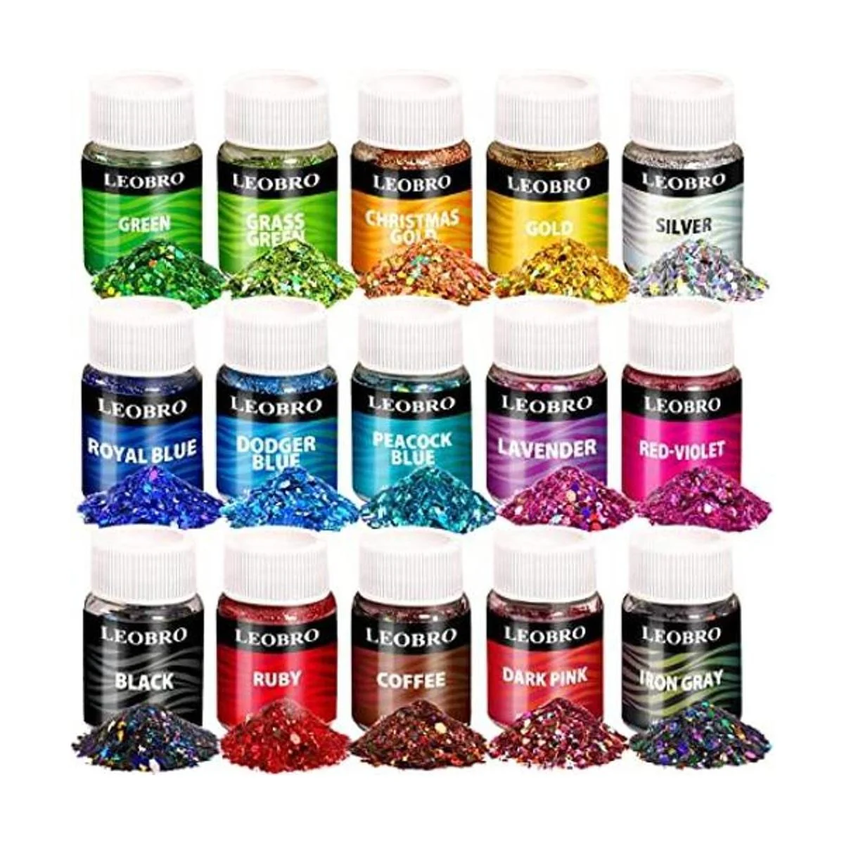Brillantina gruesa holográfica, 15 colores para manualidades de resina, purpurina de uñas LEOBRO, cosmética para festivales, ojos, cara, cuerpo, purpurina, copos de purpurina y lentejuelas para vasos de resina epoxi, manualidades, bricolaje